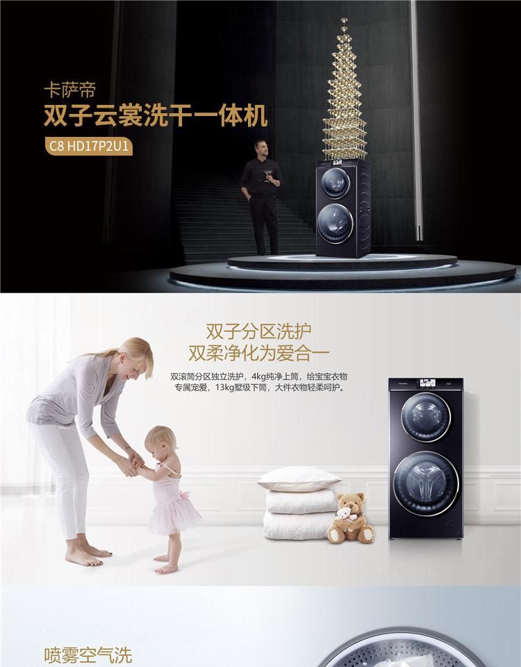 卡萨帝17公斤 双子云裳洗干一体机C8 HD17P2U1