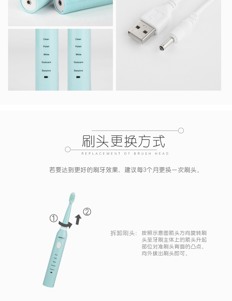 格卡诺智能电动牙刷(赠三个刷头)