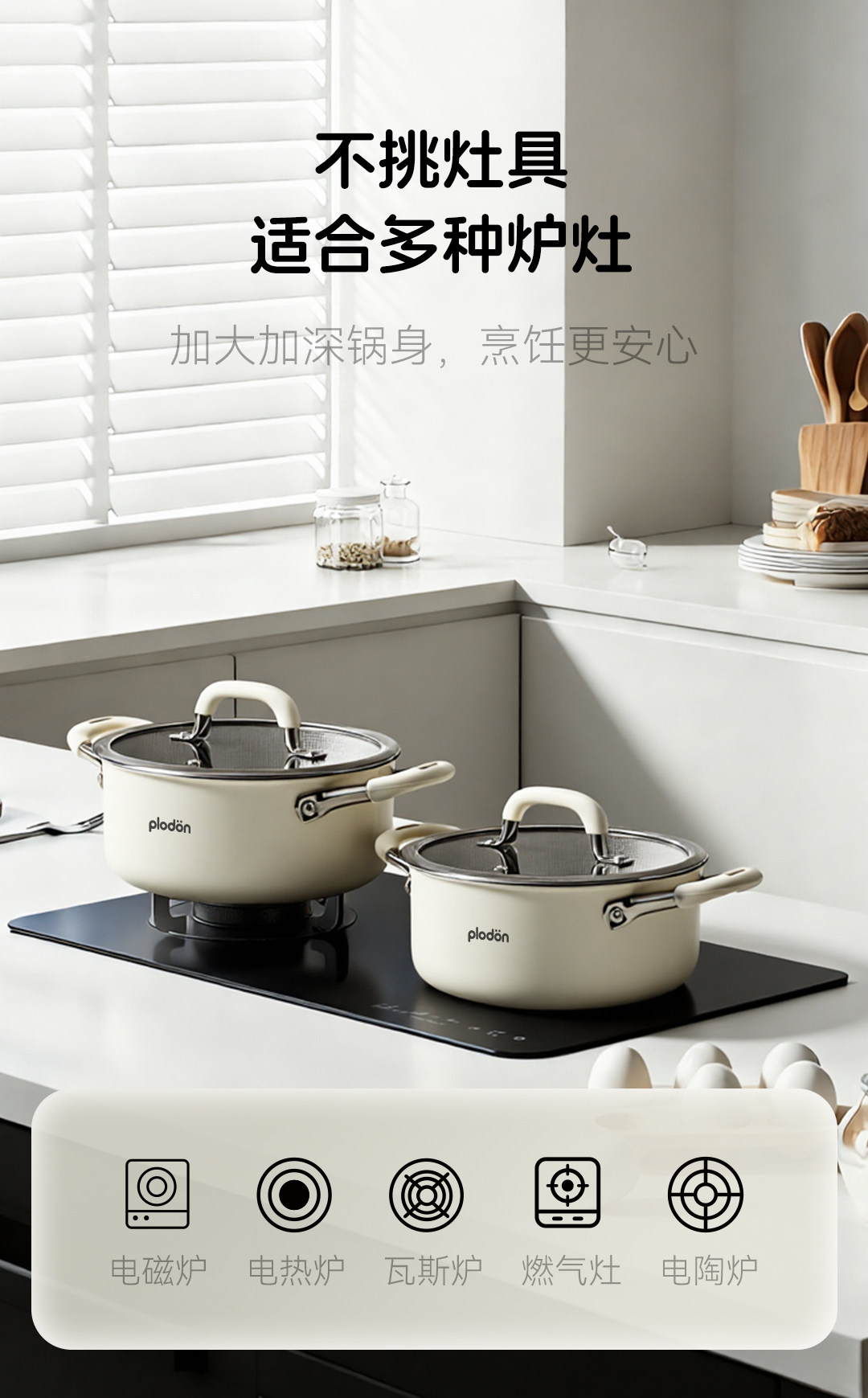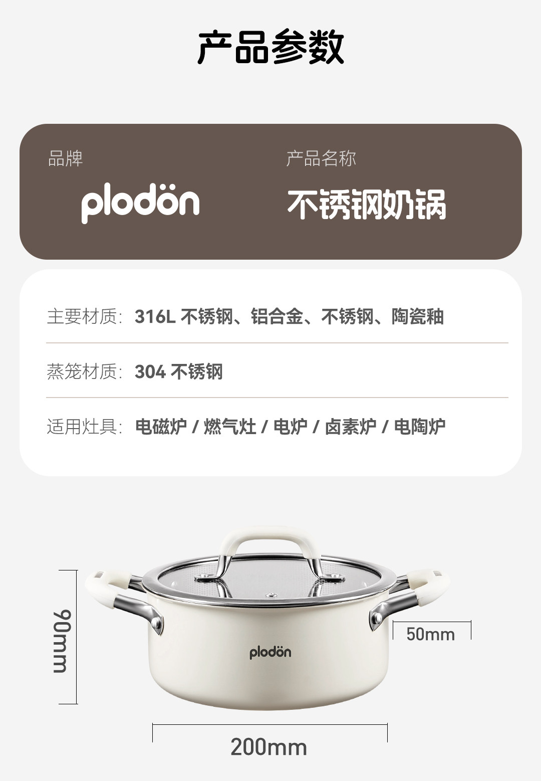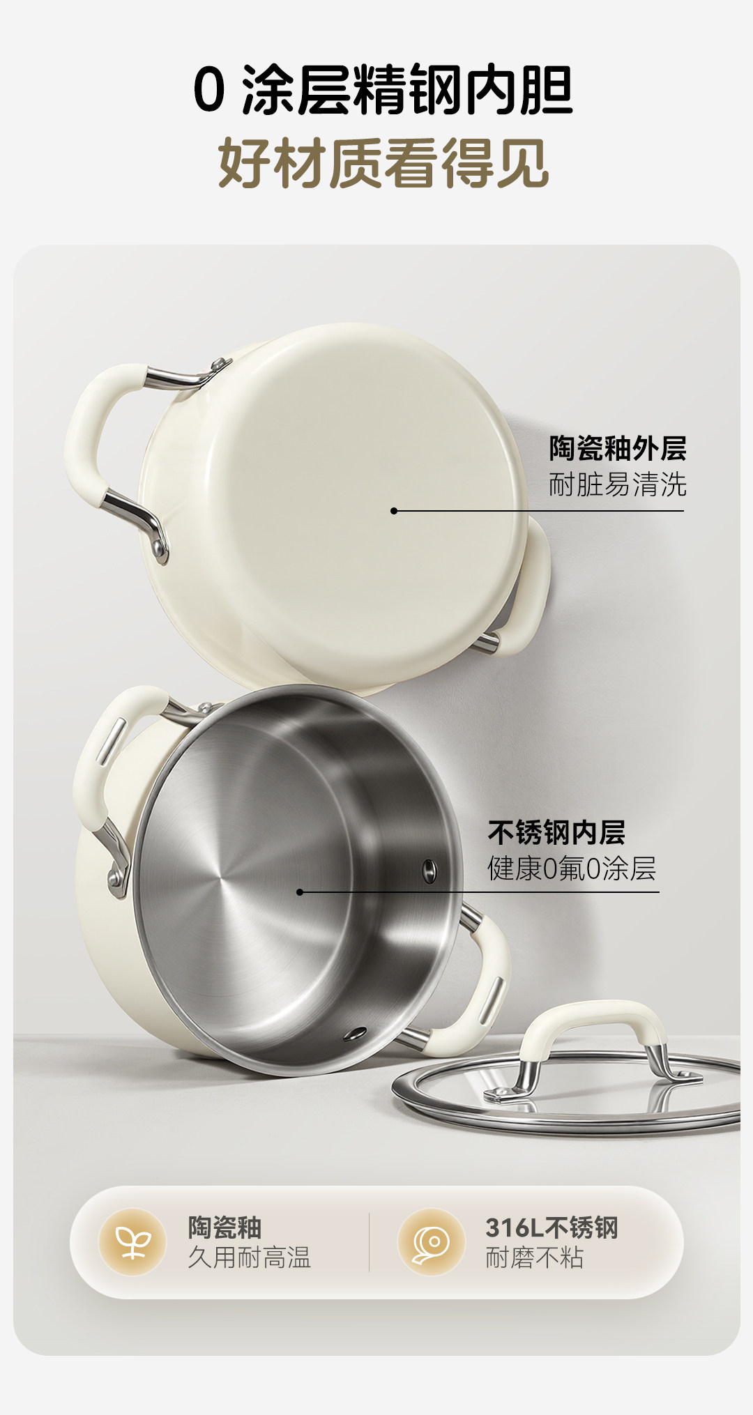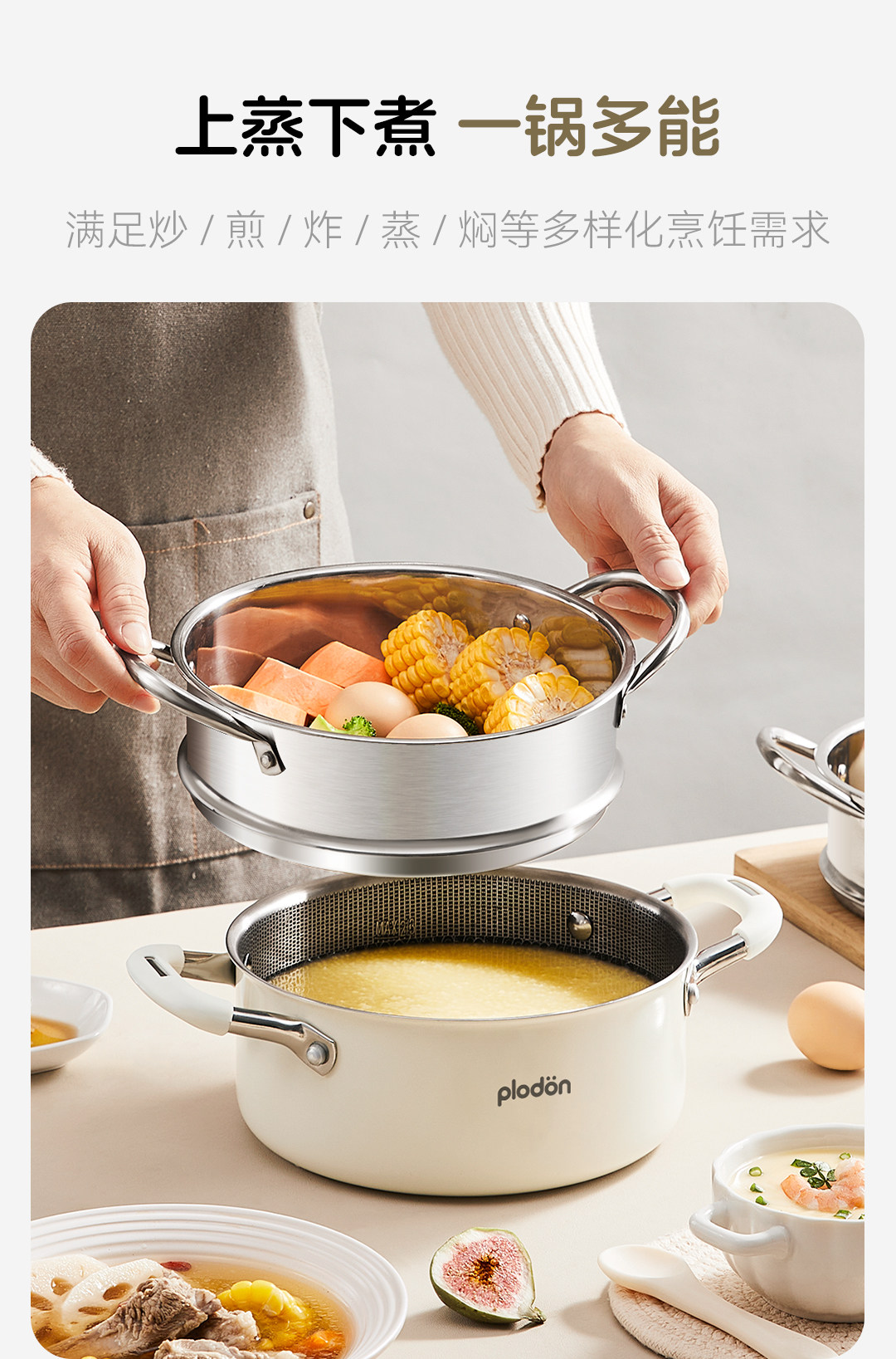 浦利顿316L不锈钢汤锅家用加厚蒸笼煮粥焖炖锅双耳电磁炉燃气专用奶锅