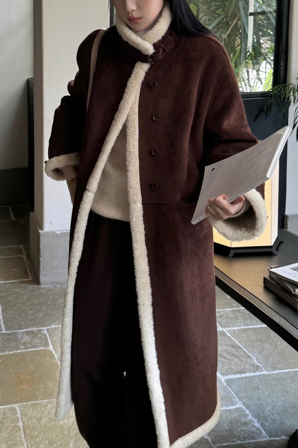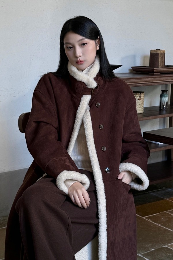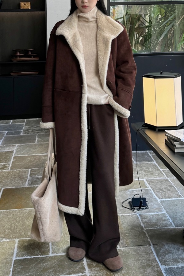 LNNNS 咖色复古皮毛一体羊羔毛大衣外套 21634
