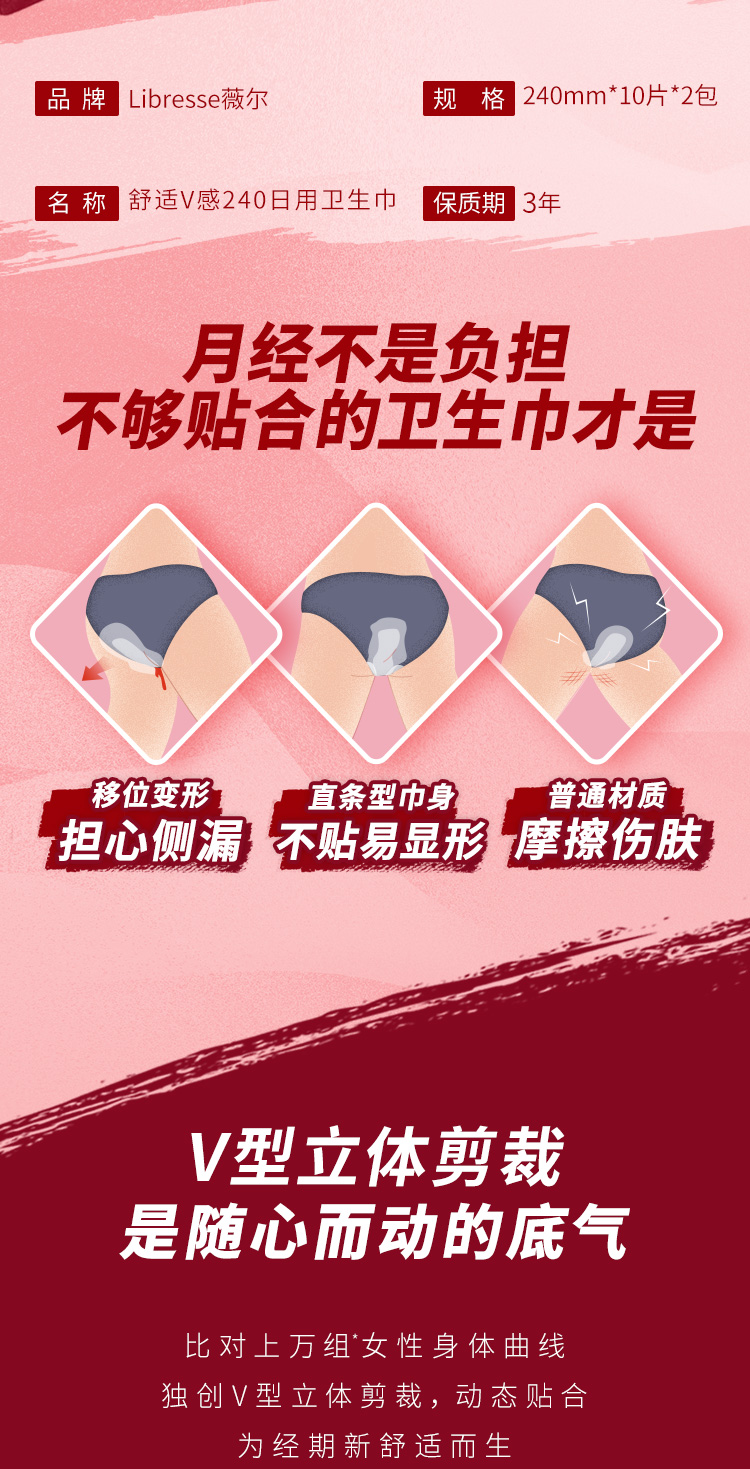Libresse薇尔舒适V感240日用10片×2包维达细韧手帕纸10包×2提