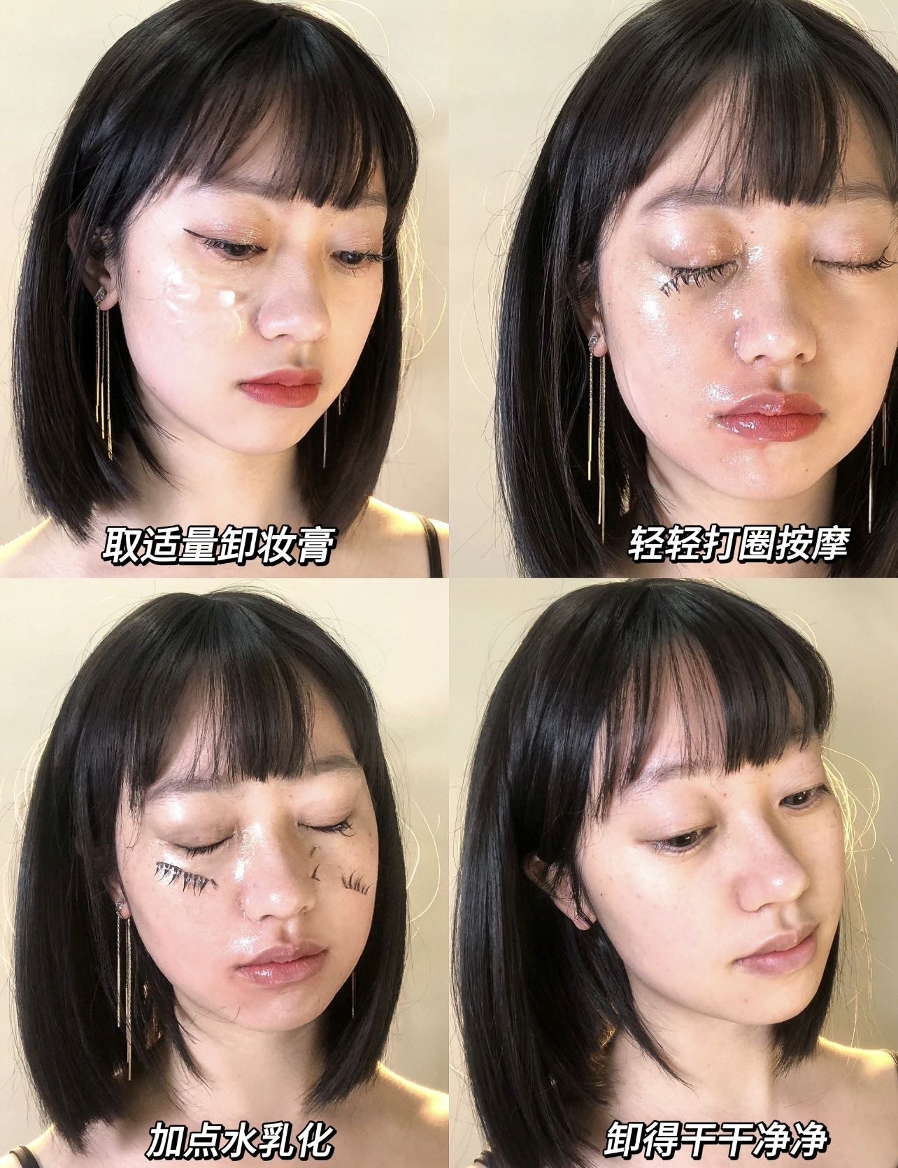 轻轻揉搓带走脸上彩妆、脏污灰尘