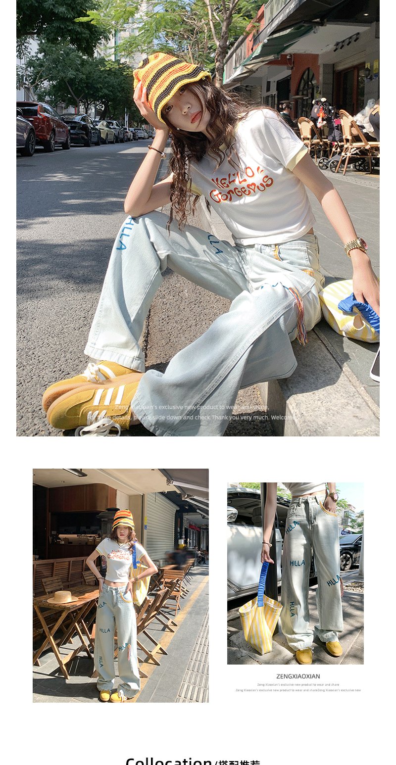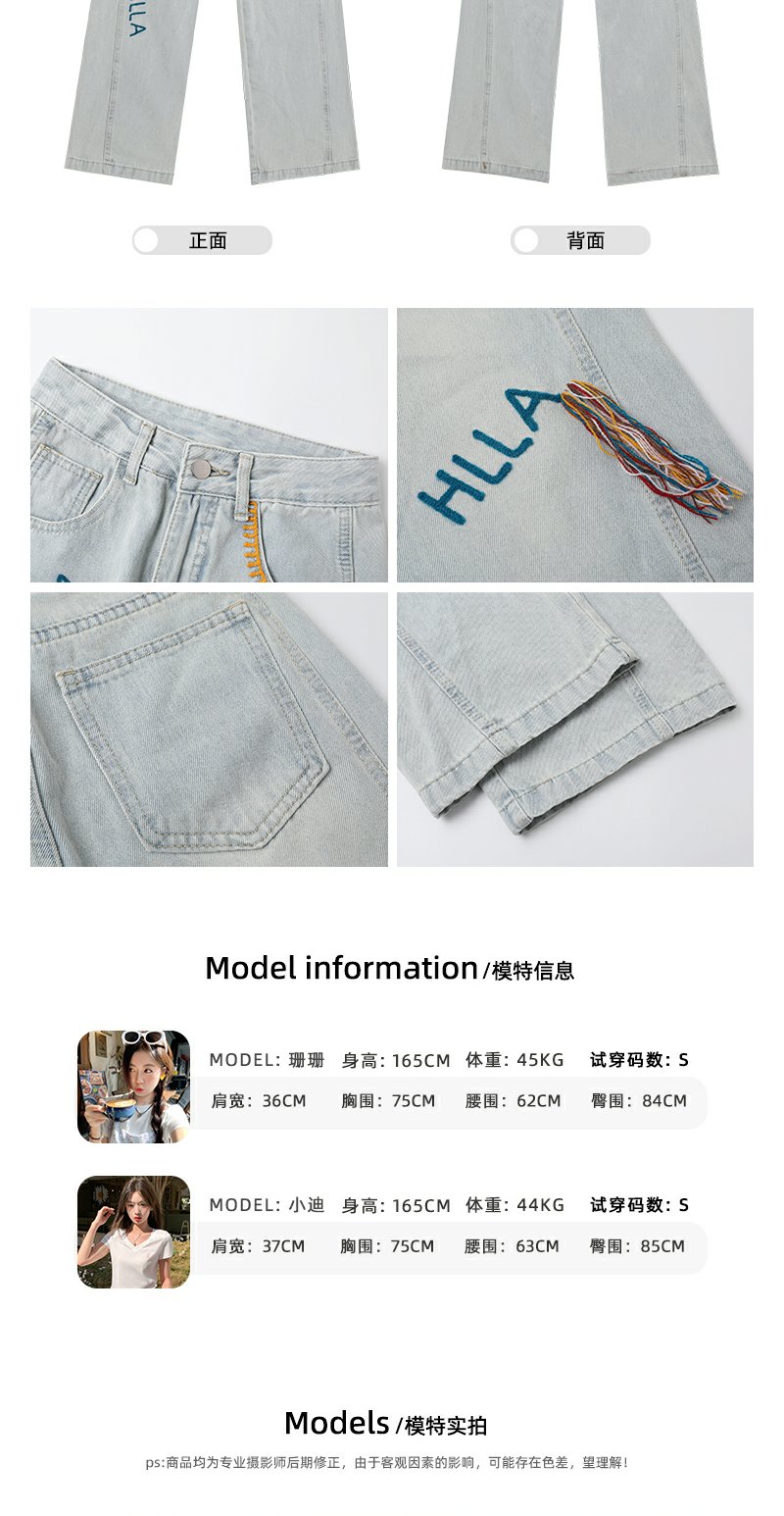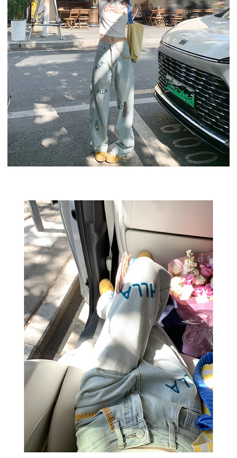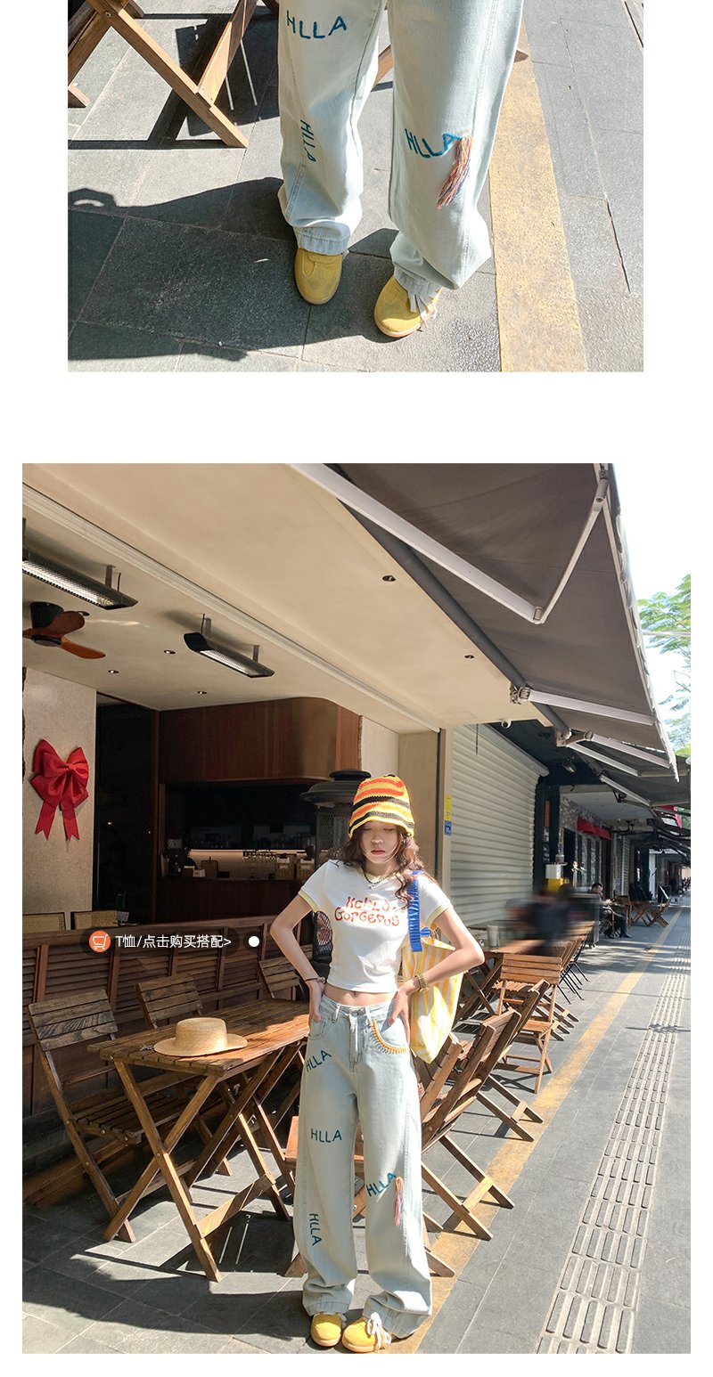 <曾小咸推荐>美式街头字母刺绣阔腿牛仔裤