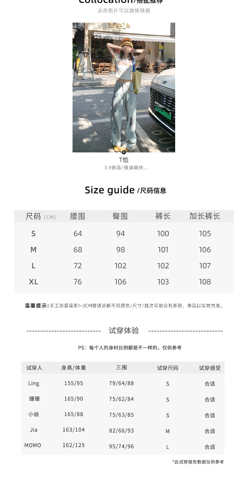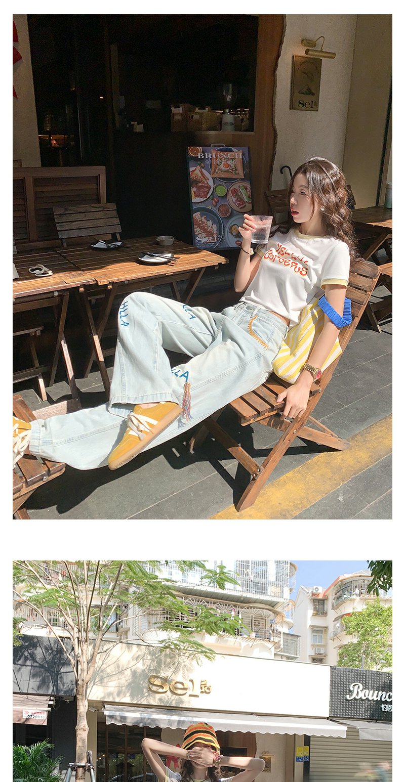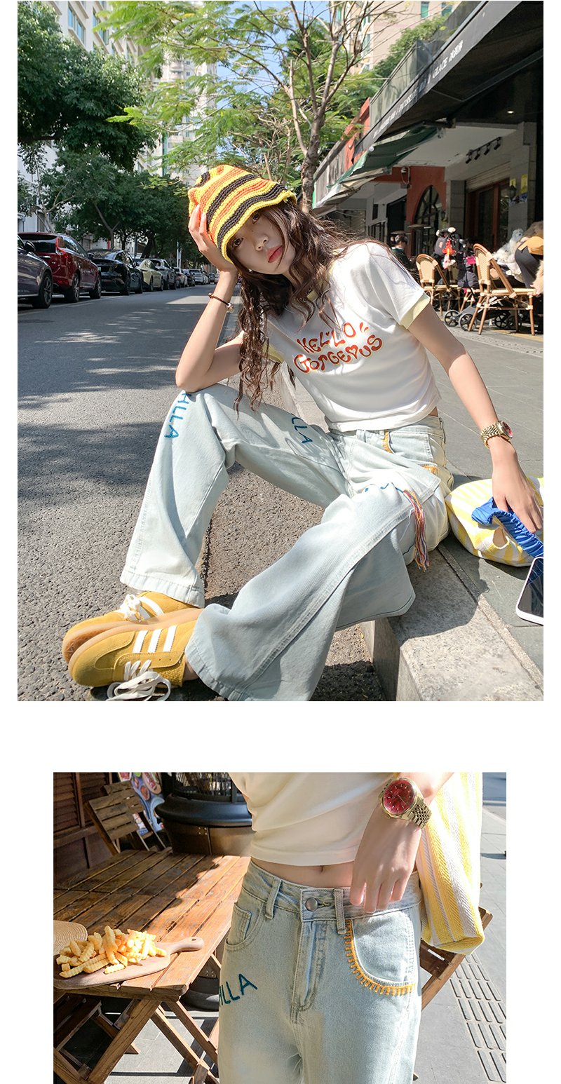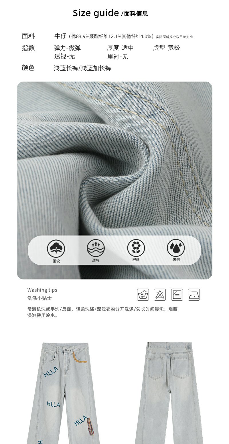 <曾小咸推荐>美式街头字母刺绣阔腿牛仔裤