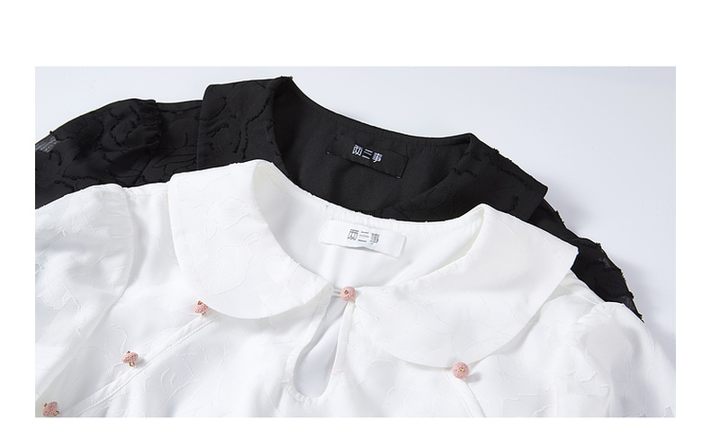 两三事 月缎流萤 2025夏季新款淑女风印花荷叶边刺绣翻领衬衫女