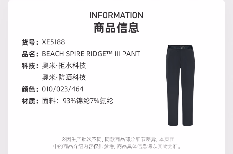 哥伦比亚净色拒水长裤XE5188