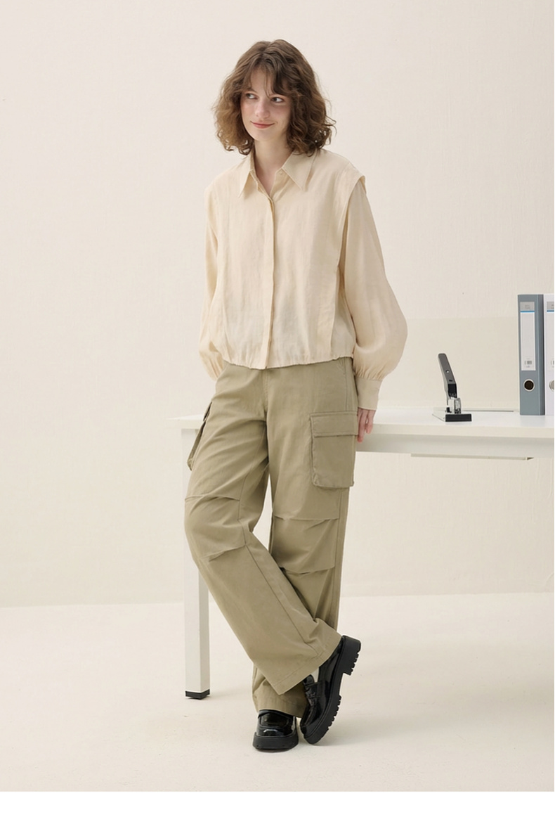 谜底造型衬衫长袖2026春季新品通勤提花短款时髦衬衣女265MC5037