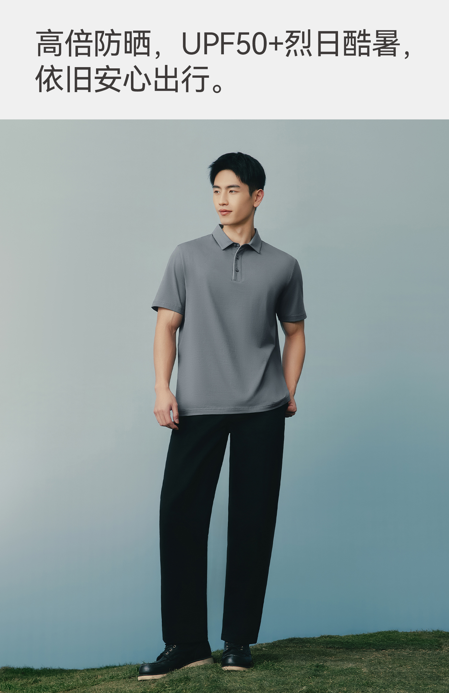 Threegun三枪 冰泉棉翻领短袖男衫-T10011A01