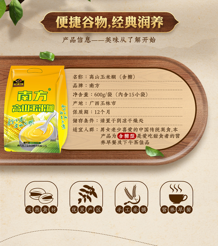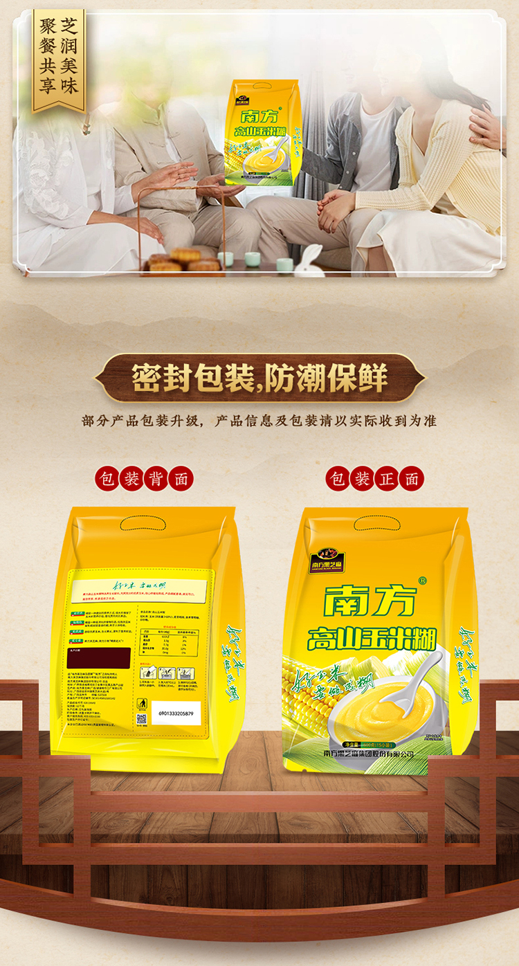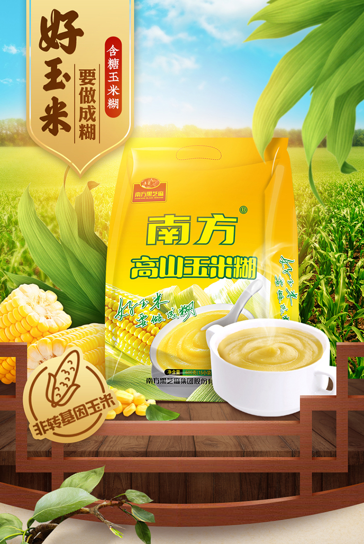 南方黑芝麻高山玉米糊原味/无添加蔗糖600g营养粗杂粮速食早餐饱腹代餐