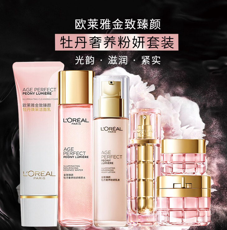 欧莱雅金致臻颜牡丹奢养粉妍女士护肤品组合套装 【全家福】洁面乳+水+乳液+眼霜+面霜+精华液