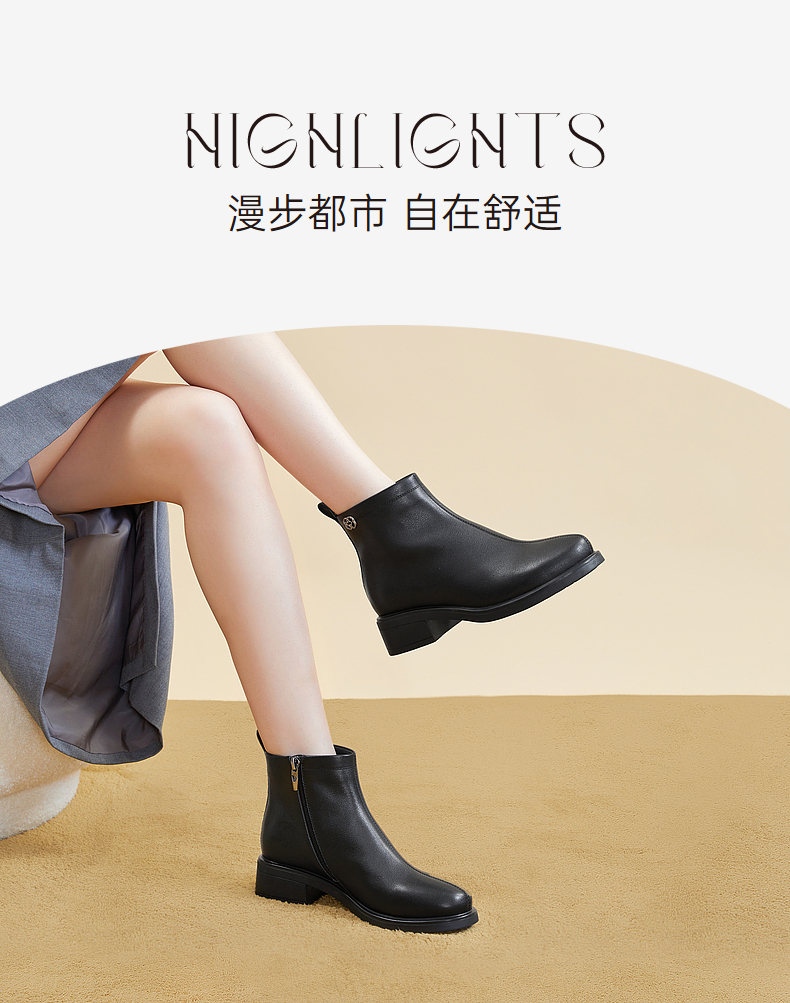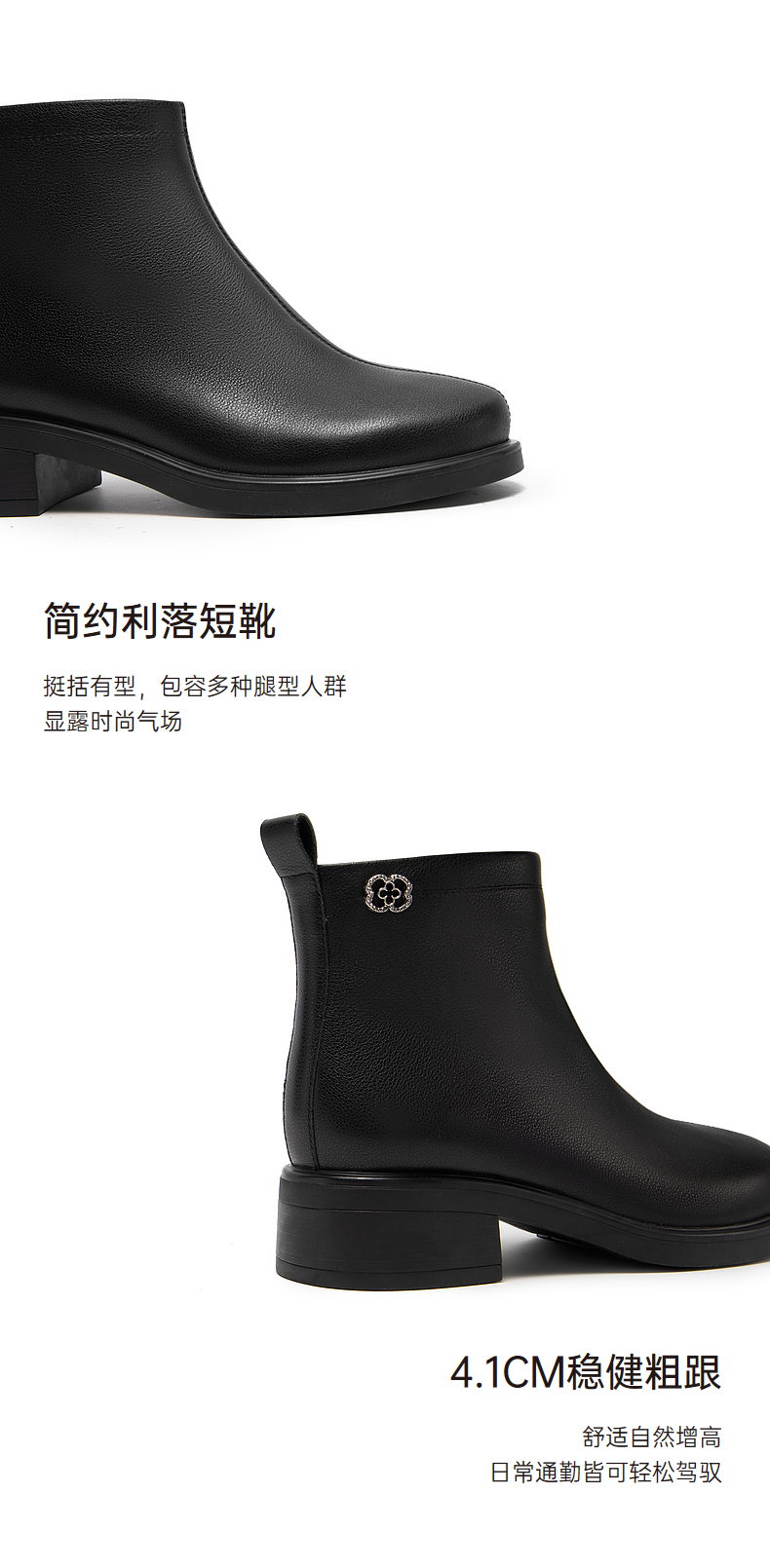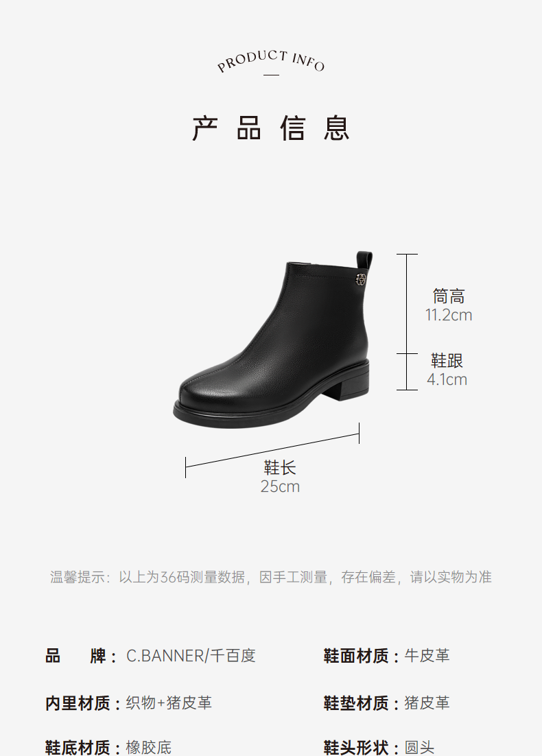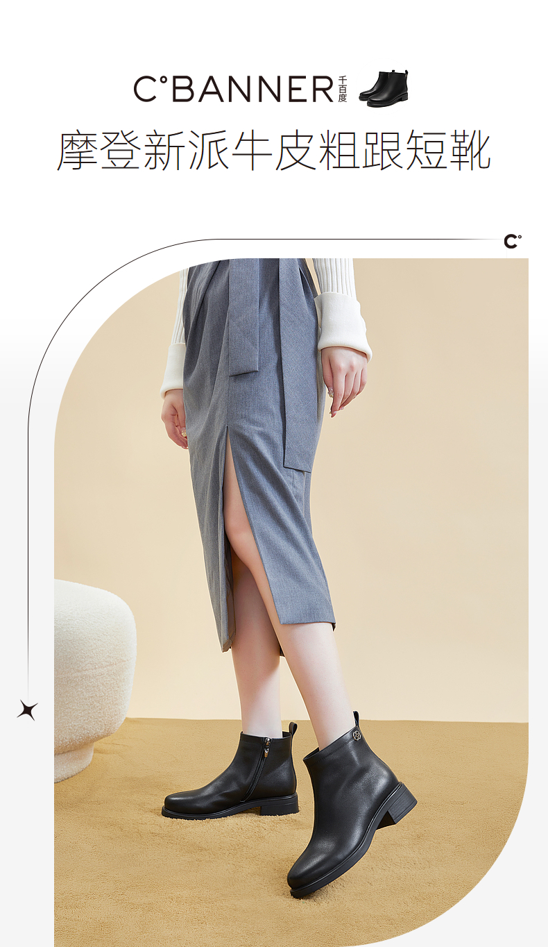 千百度真皮时装靴秋冬时尚短靴子女鞋英伦风舒适显瘦气质A23529906