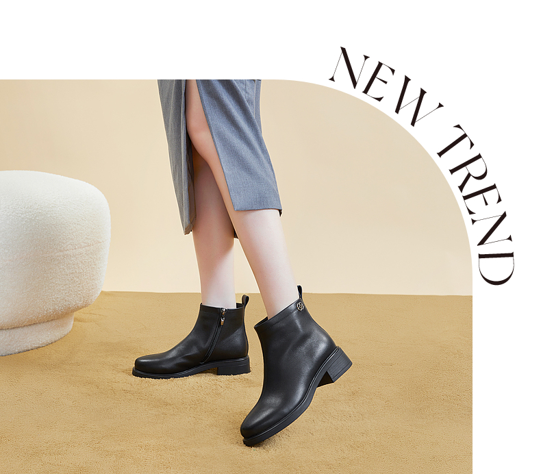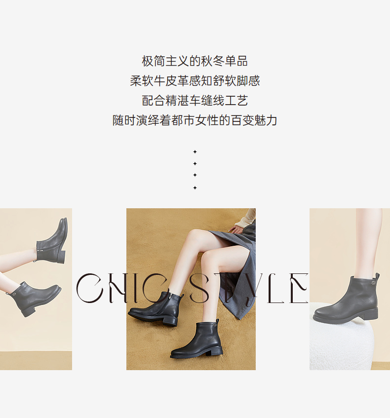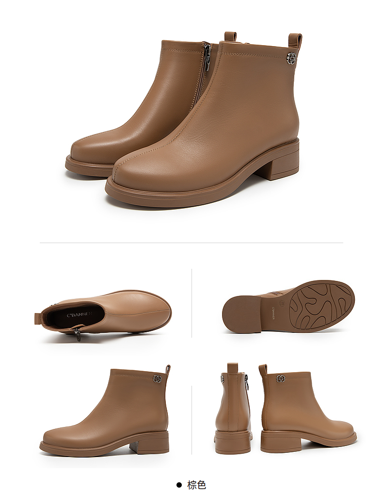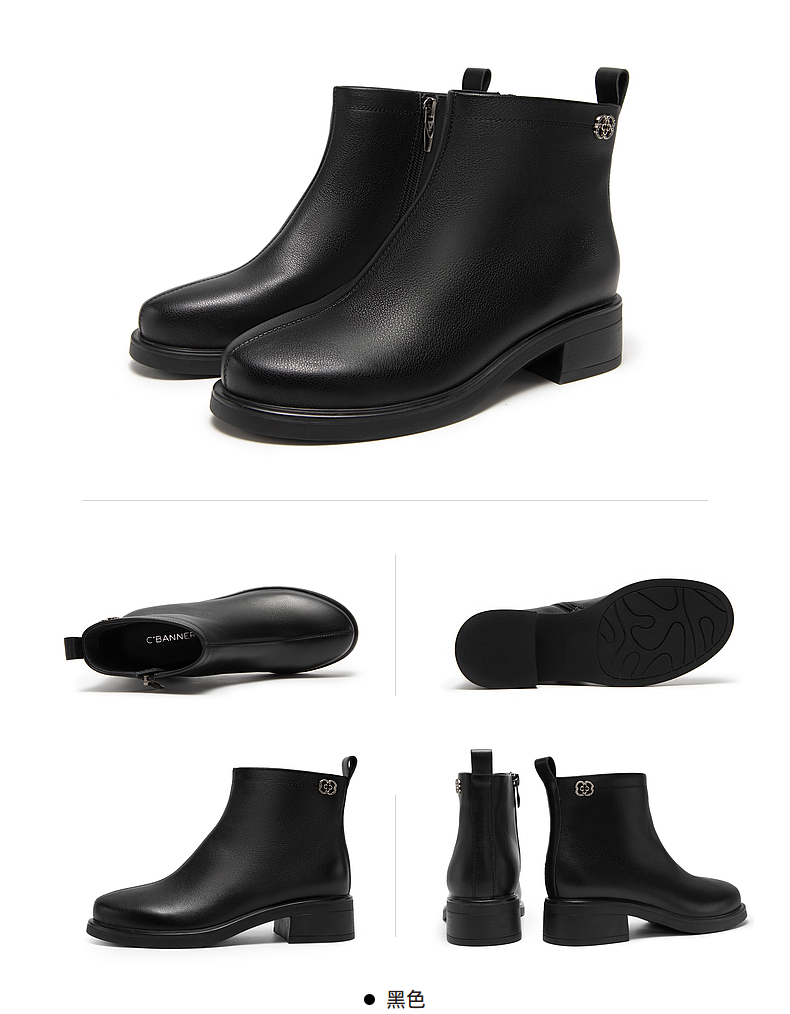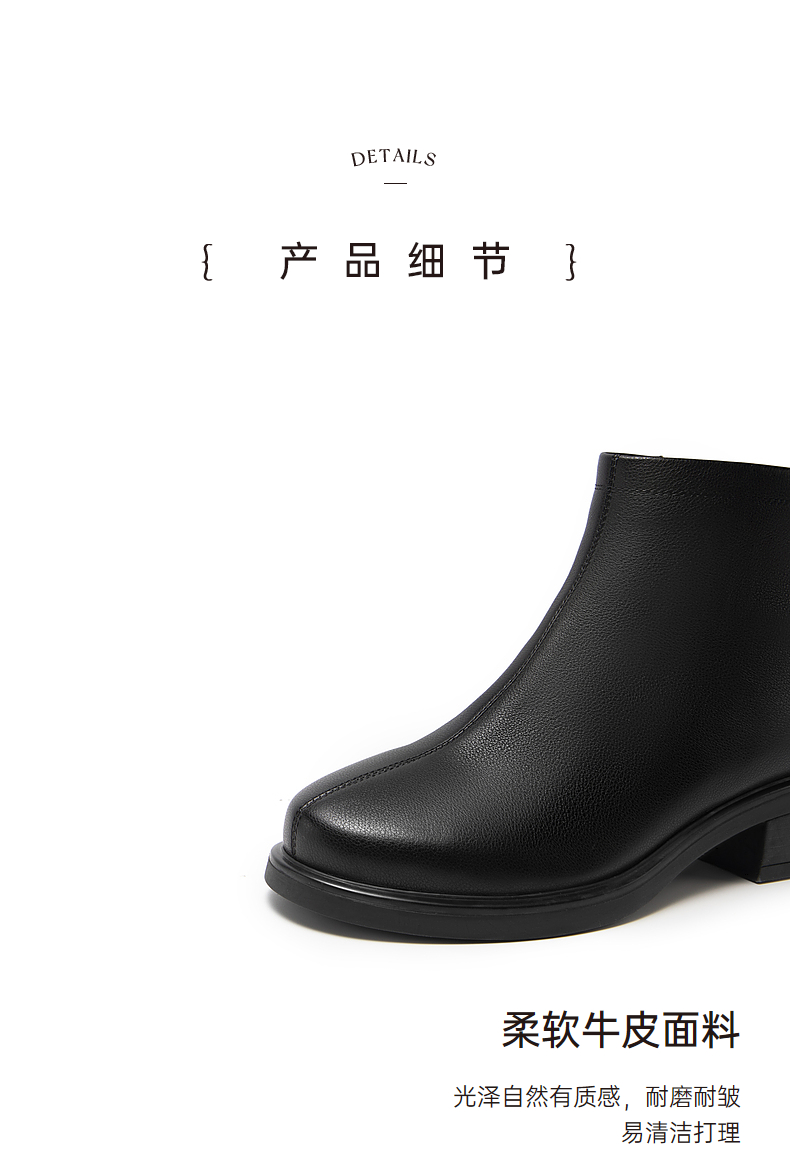 千百度真皮时装靴秋冬时尚短靴子女鞋英伦风舒适显瘦气质A23529906