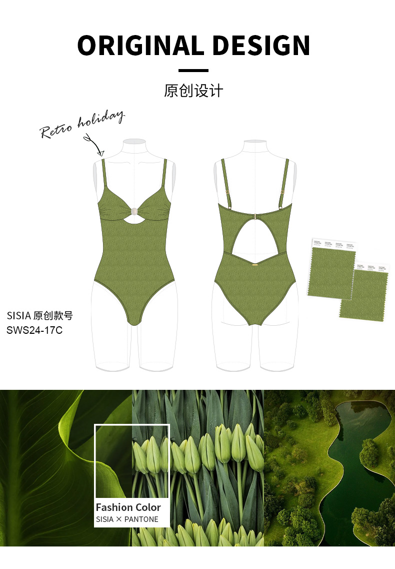 sisia泳衣女高级感2025新款欧美显瘦性感绝美泡温泉连体泳衣女款SWS24-17C SWS24-17B