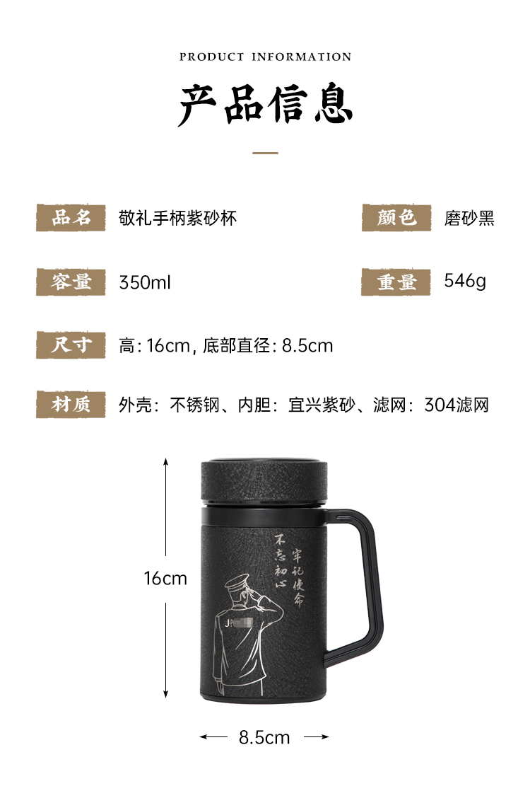 【敬礼手柄紫砂杯】创意紫砂水杯 男女士办公泡茶杯