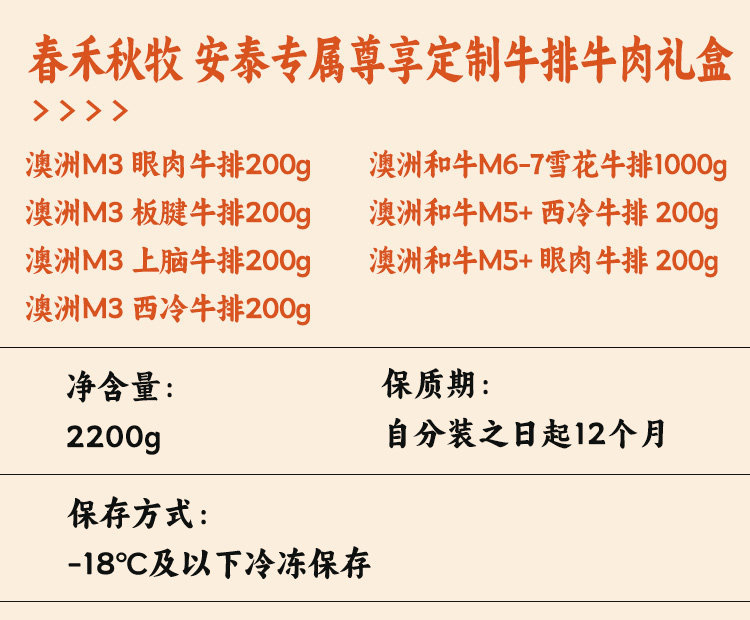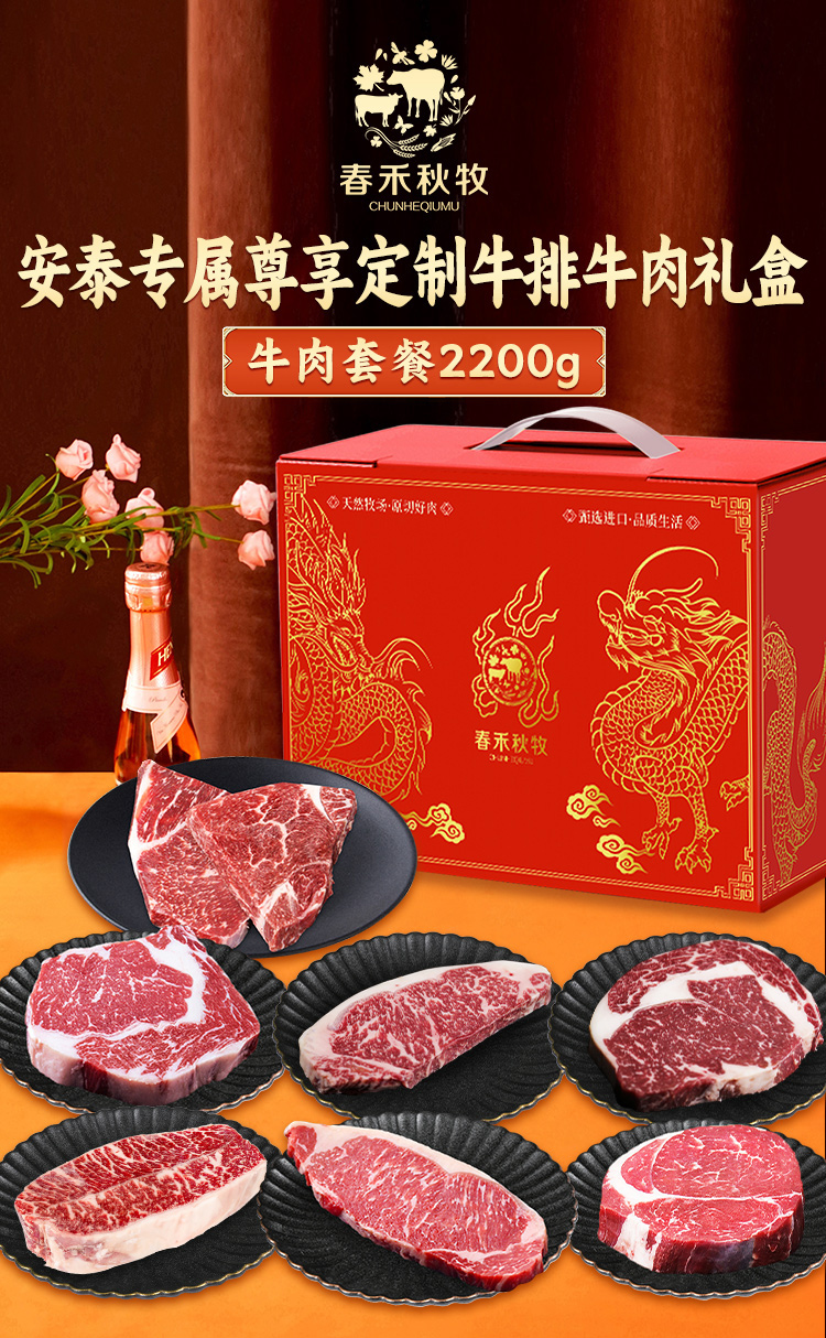 春禾秋牧 安泰专属尊享定制牛排牛肉礼盒 2.2kg