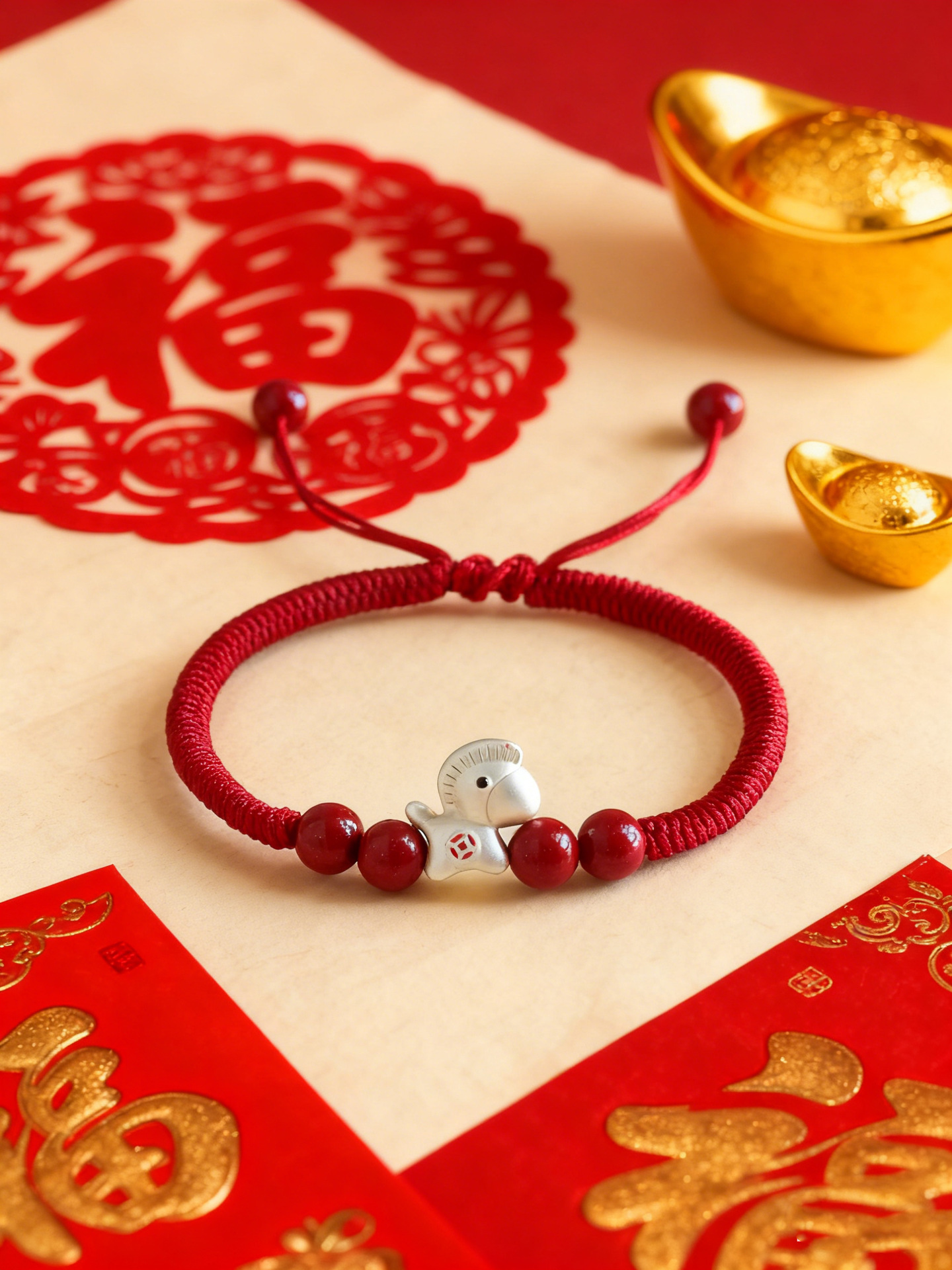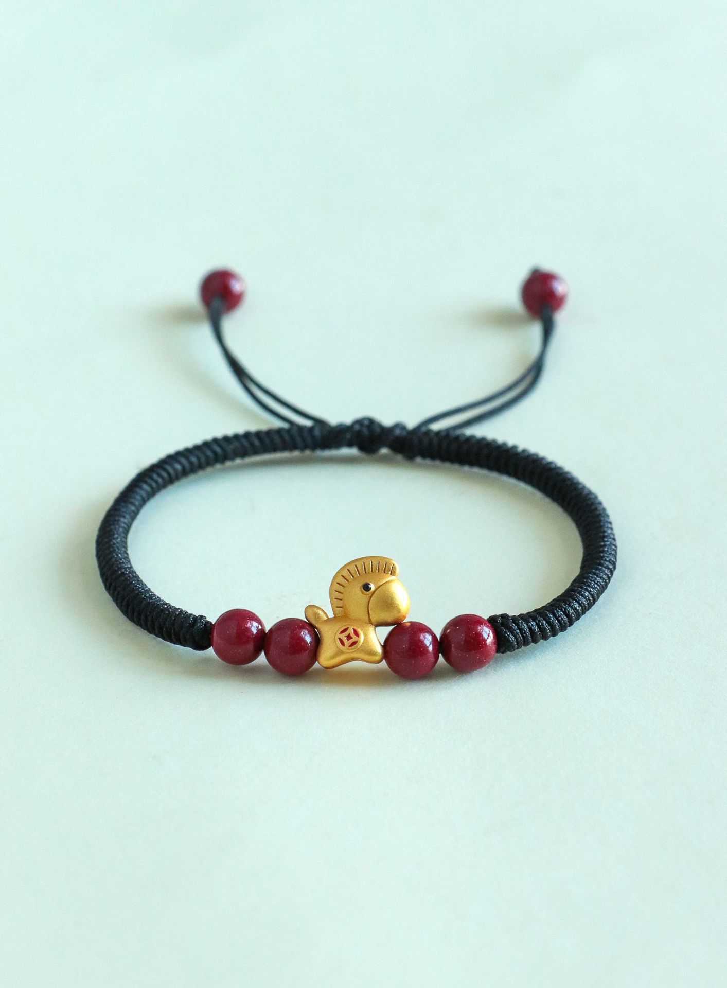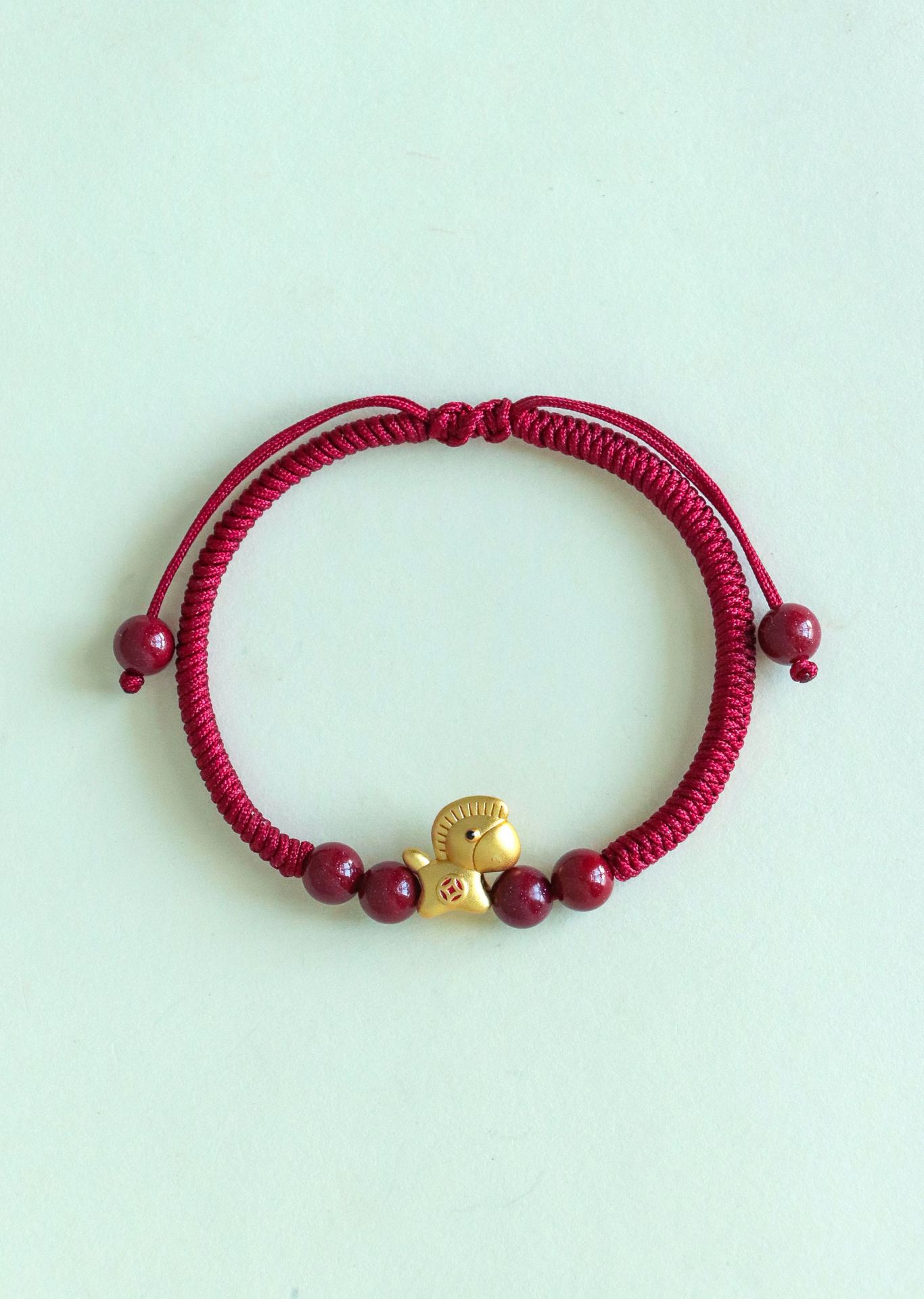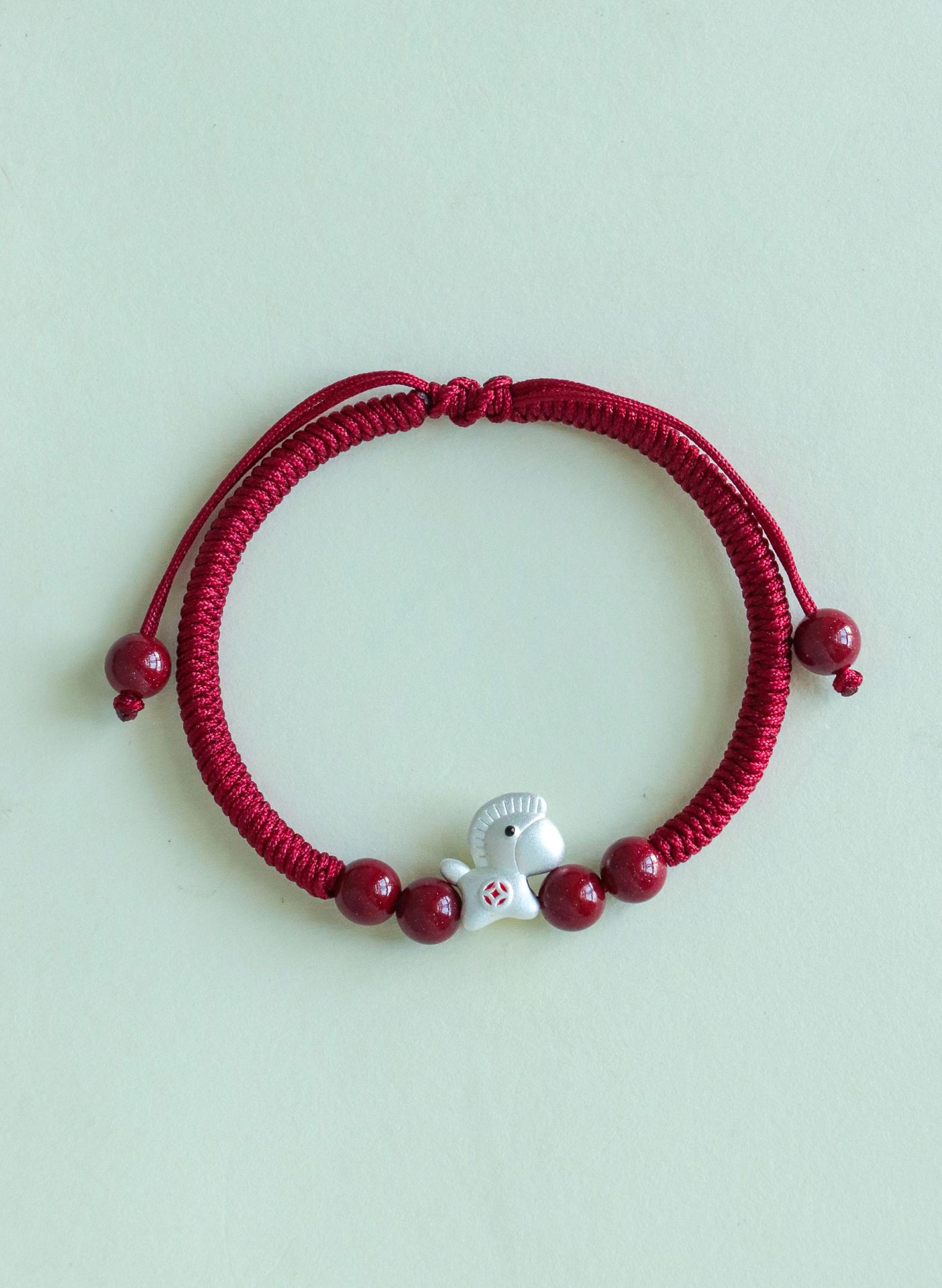 【马上暴富】马年本命年手工编织手绳 抽拉可调节 999银马红绳手链 节日生日礼物