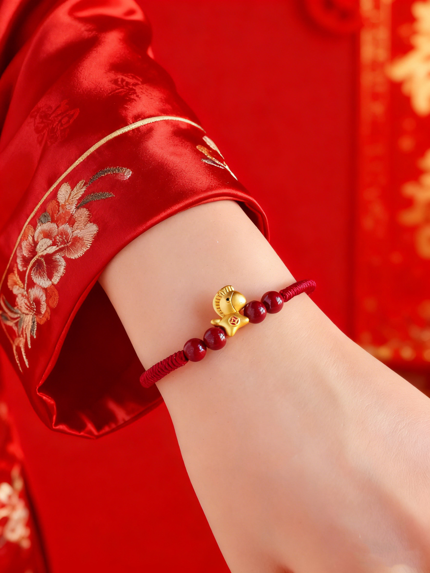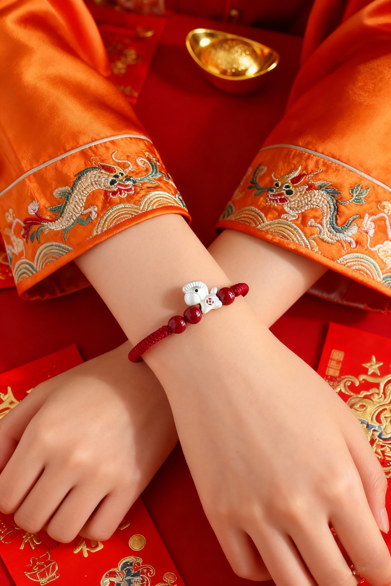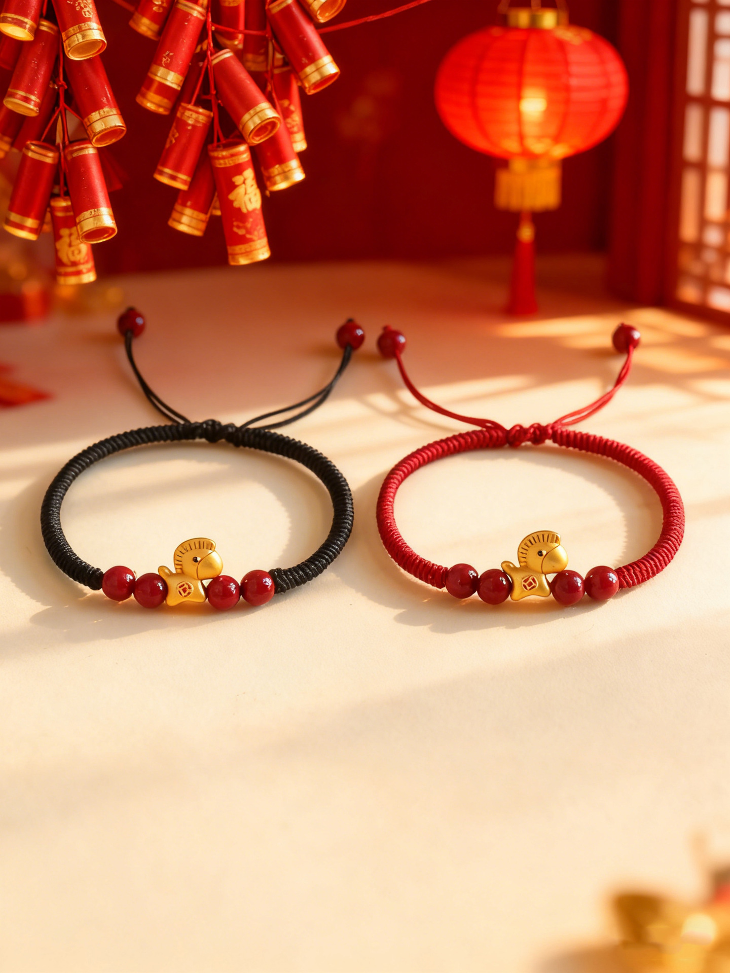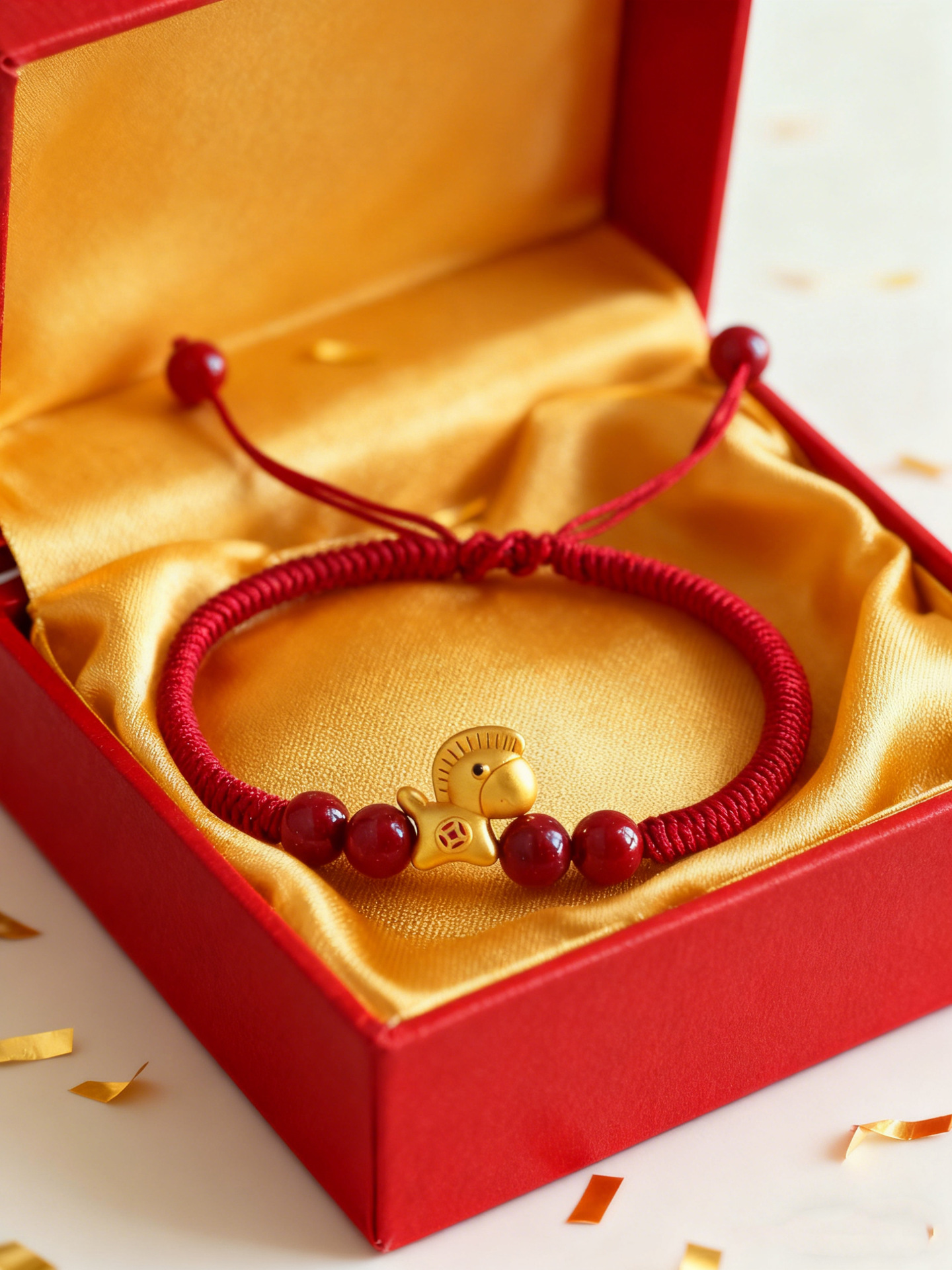 【马上暴富】马年本命年手工编织手绳 抽拉可调节 999银马红绳手链 节日生日礼物