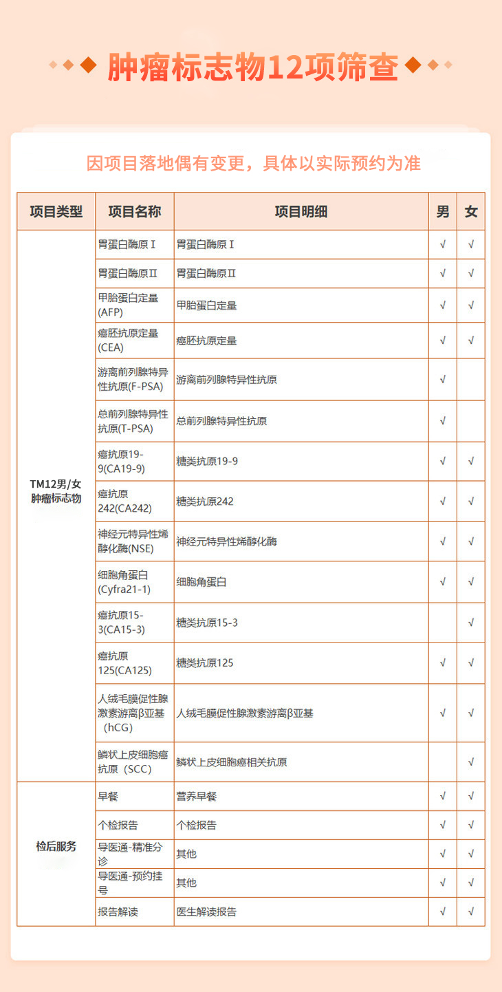 TM12肿瘤标志物(男)适用于爱康国宾/VIP/卓悦