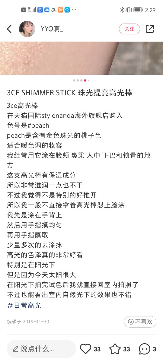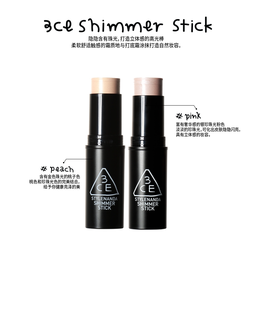 商品名称:【清仓好价】3CE高光棒 闪耀蜜桃PEACH 无盒无批(23年后)