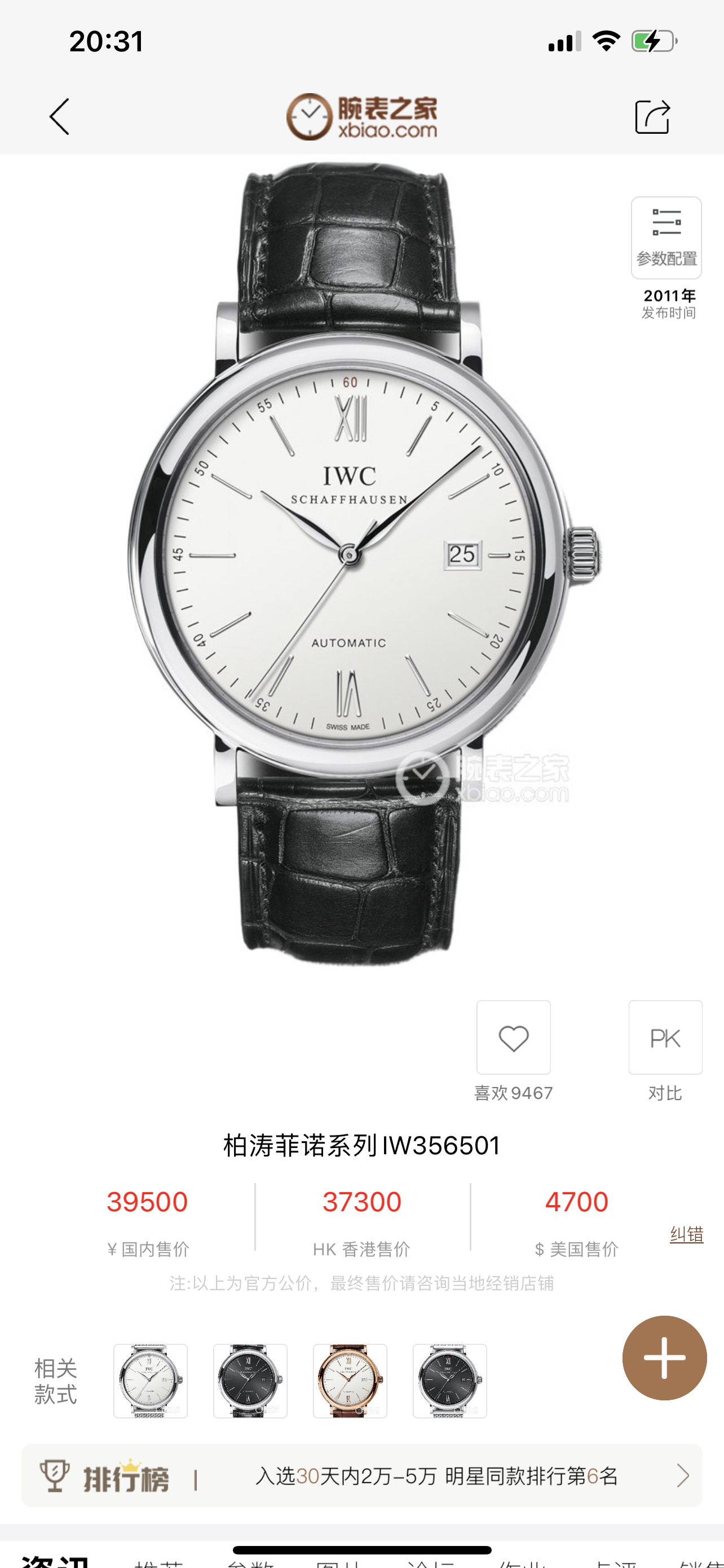 万国-柏涛菲诺白色表盘