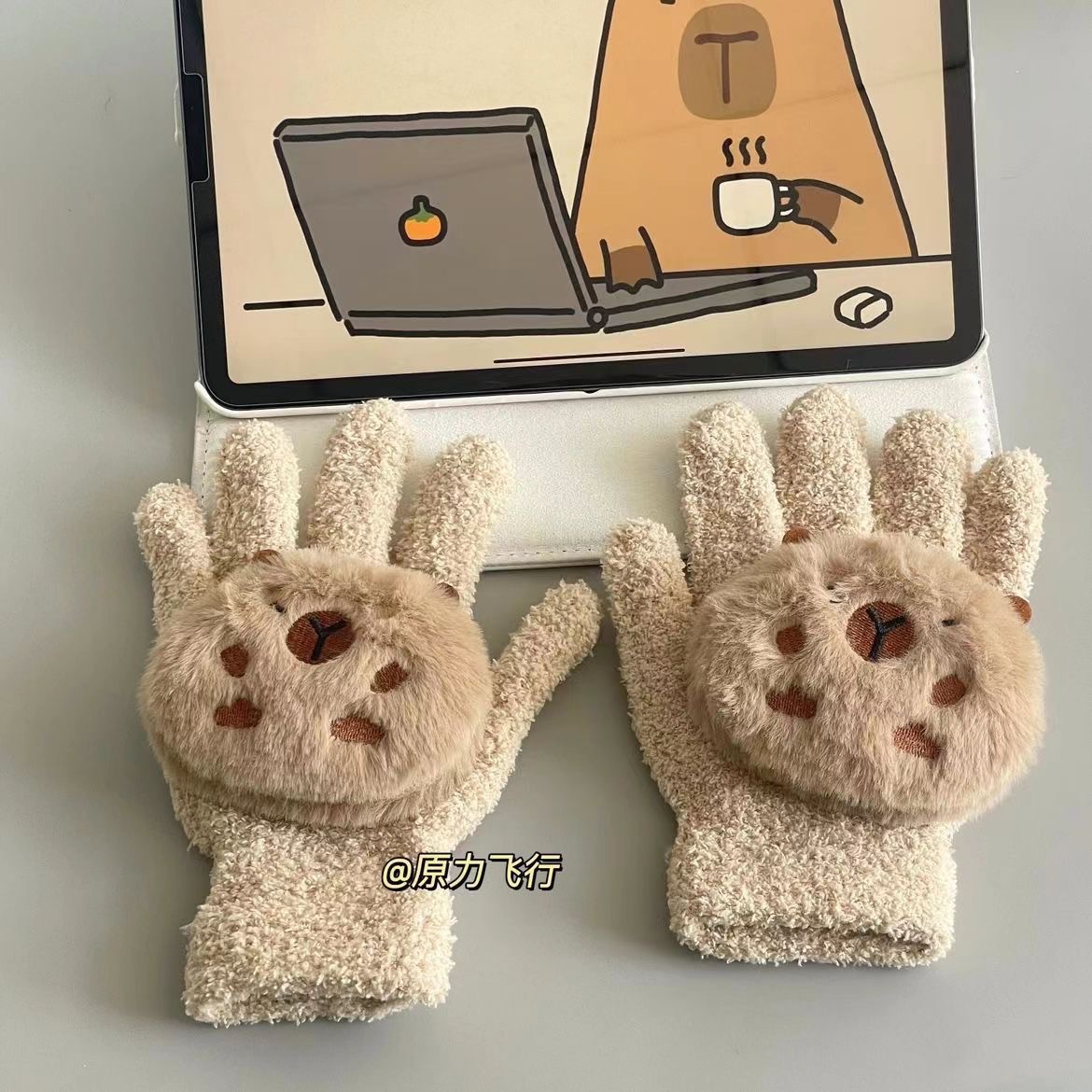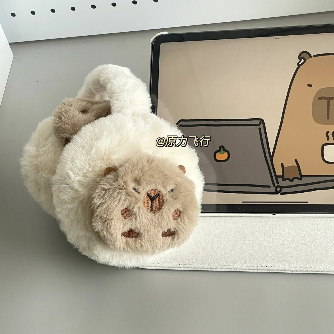 新款【🔥卡皮巴拉过冬两件套】卡皮巴拉仿兔毛全包耳罩 学生保暖耳捂防冻冬季耳罩 女防寒耳包