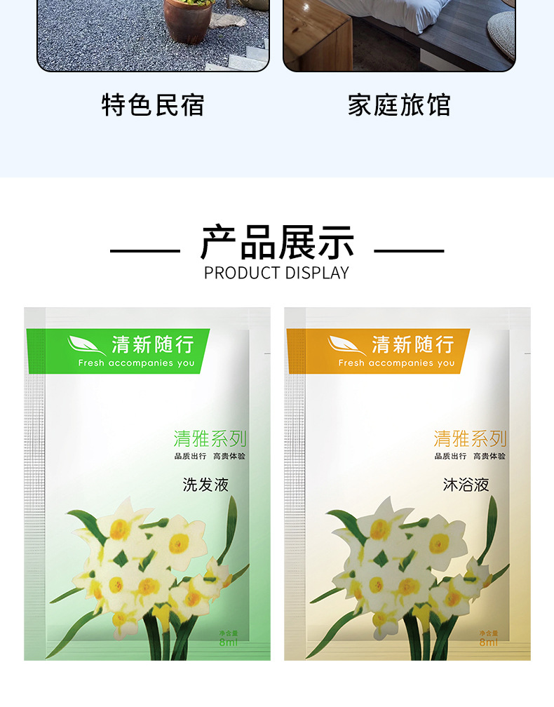 一次性袋装洗发水沐浴露便携洗护套装8ml袋装酒店宾馆洗浴场批发 商品图2