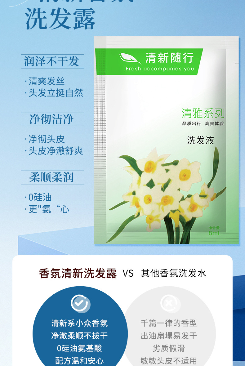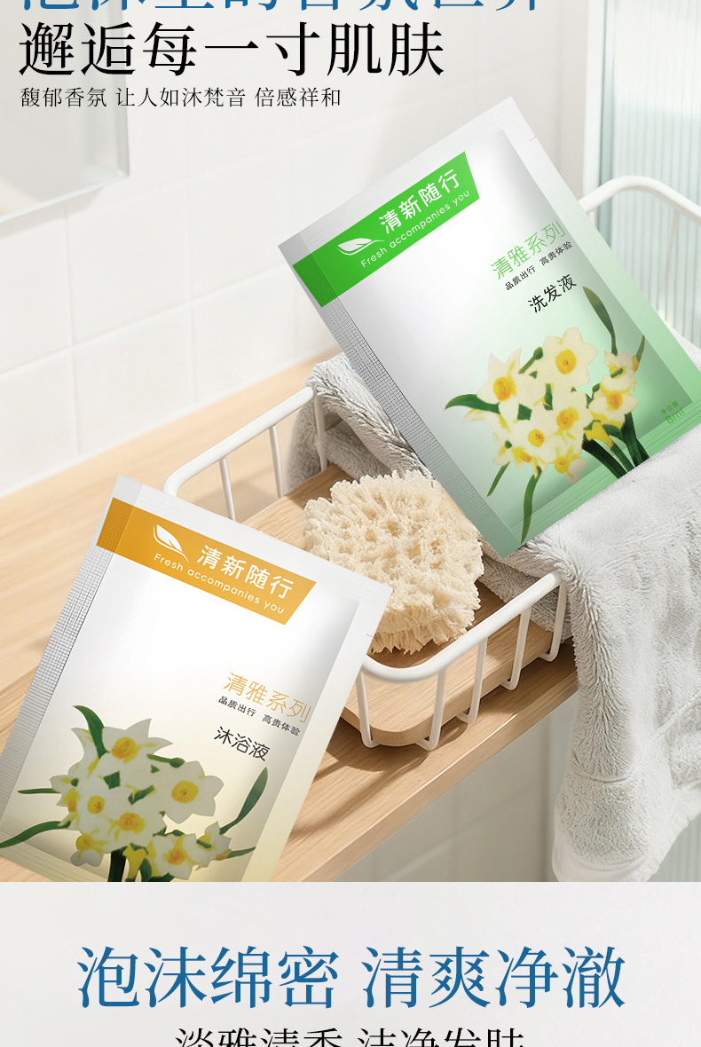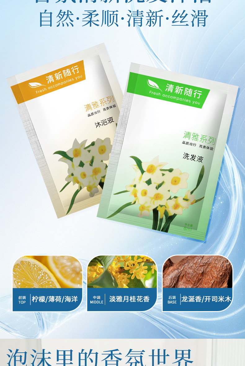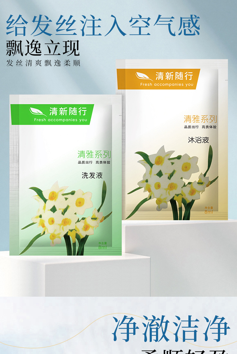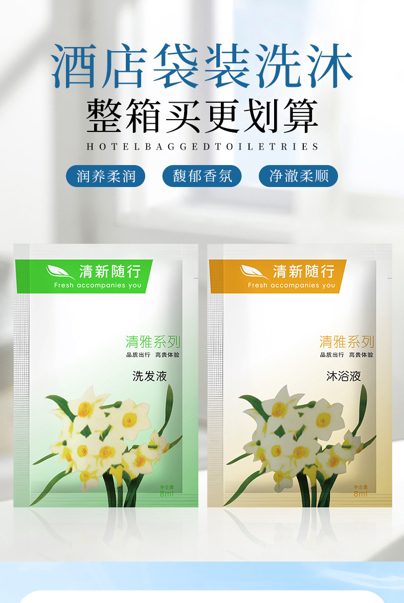 一次性袋装洗发水沐浴露便携洗护套装8ml袋装酒店宾馆洗浴场批发