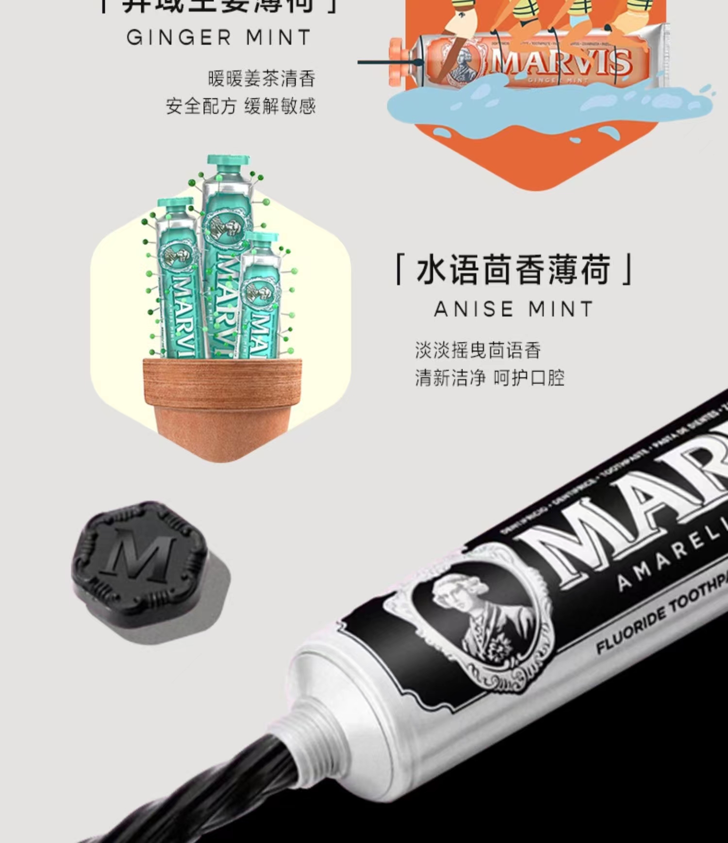 Marvis玛尔仕美白呵护牙龈清新口气牙膏