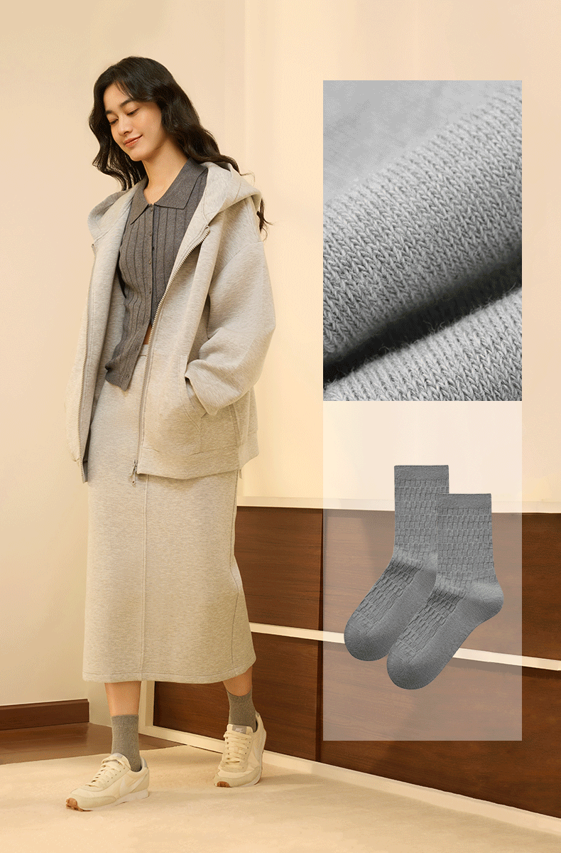 有棵树冬季保暖加厚羊毛袜女士中筒棉袜5双装-S8005