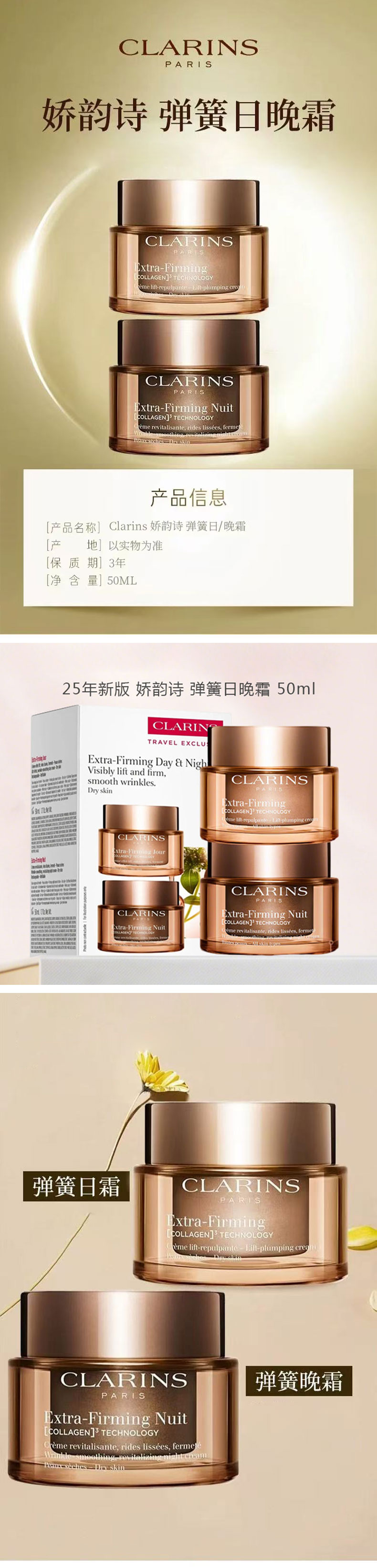 CLARINS娇韵诗 新版弹簧日晚霜双萃三件套组(新版日霜50ml+晚霜50ml套盒+第九代双萃50ml) 香港直邮