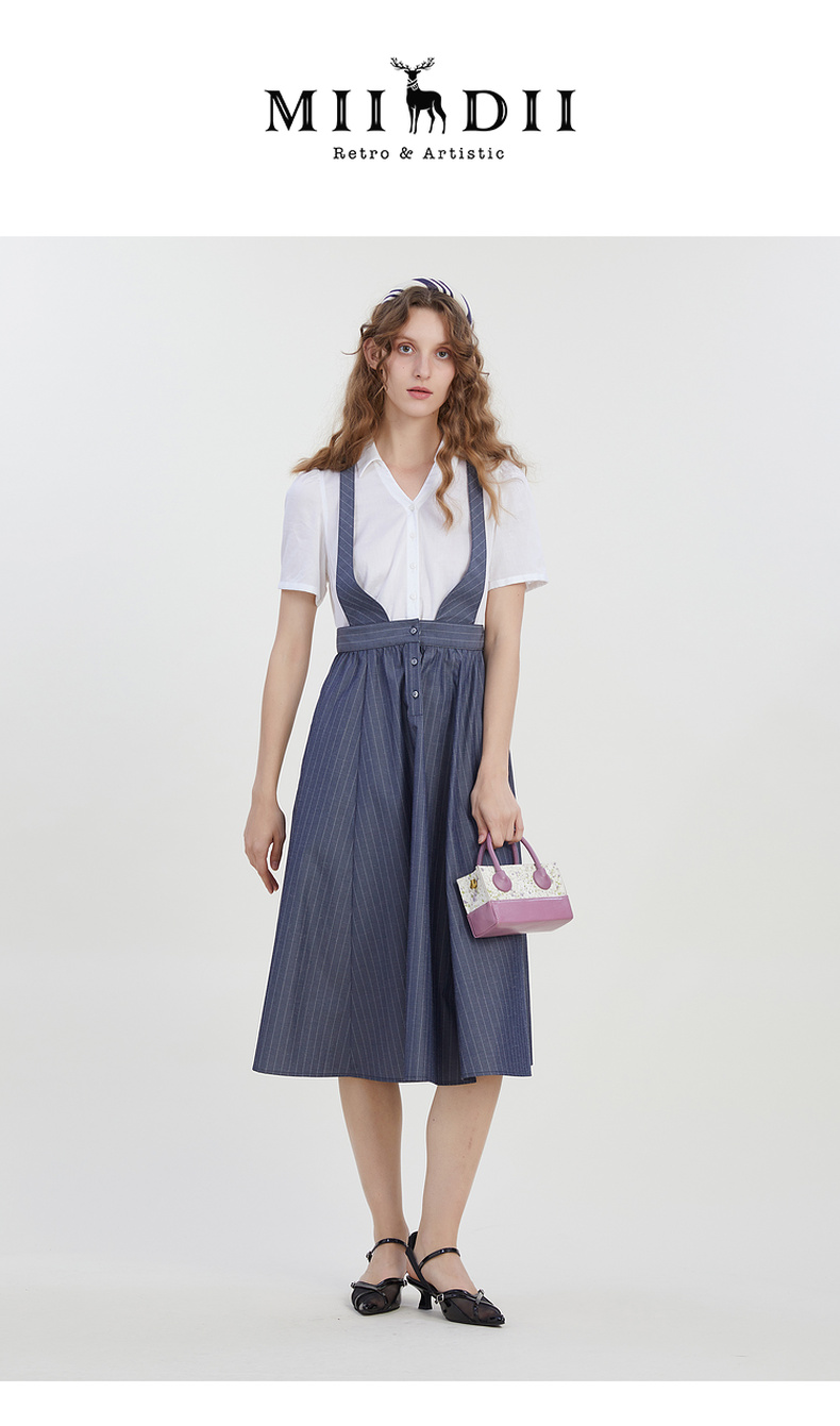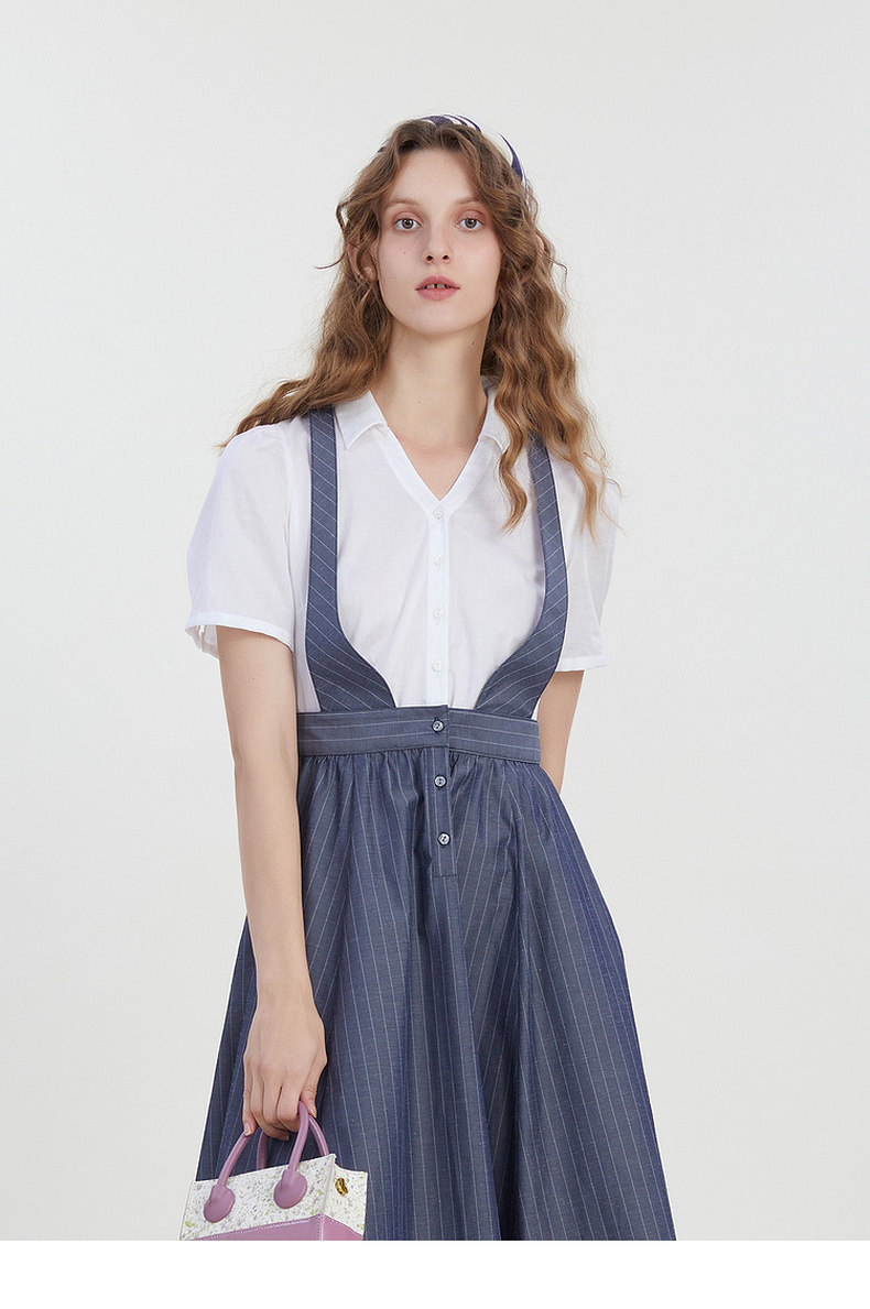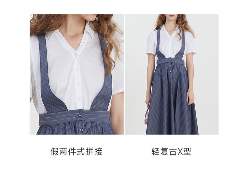 谜底拼接衬衫式连衣裙短袖2023夏季新款简约减龄中长裙232ML0710