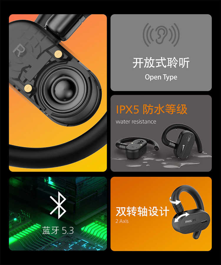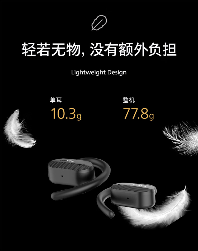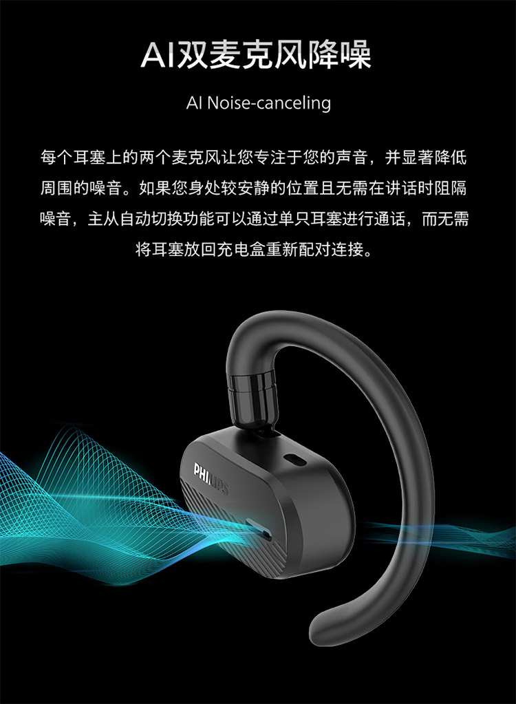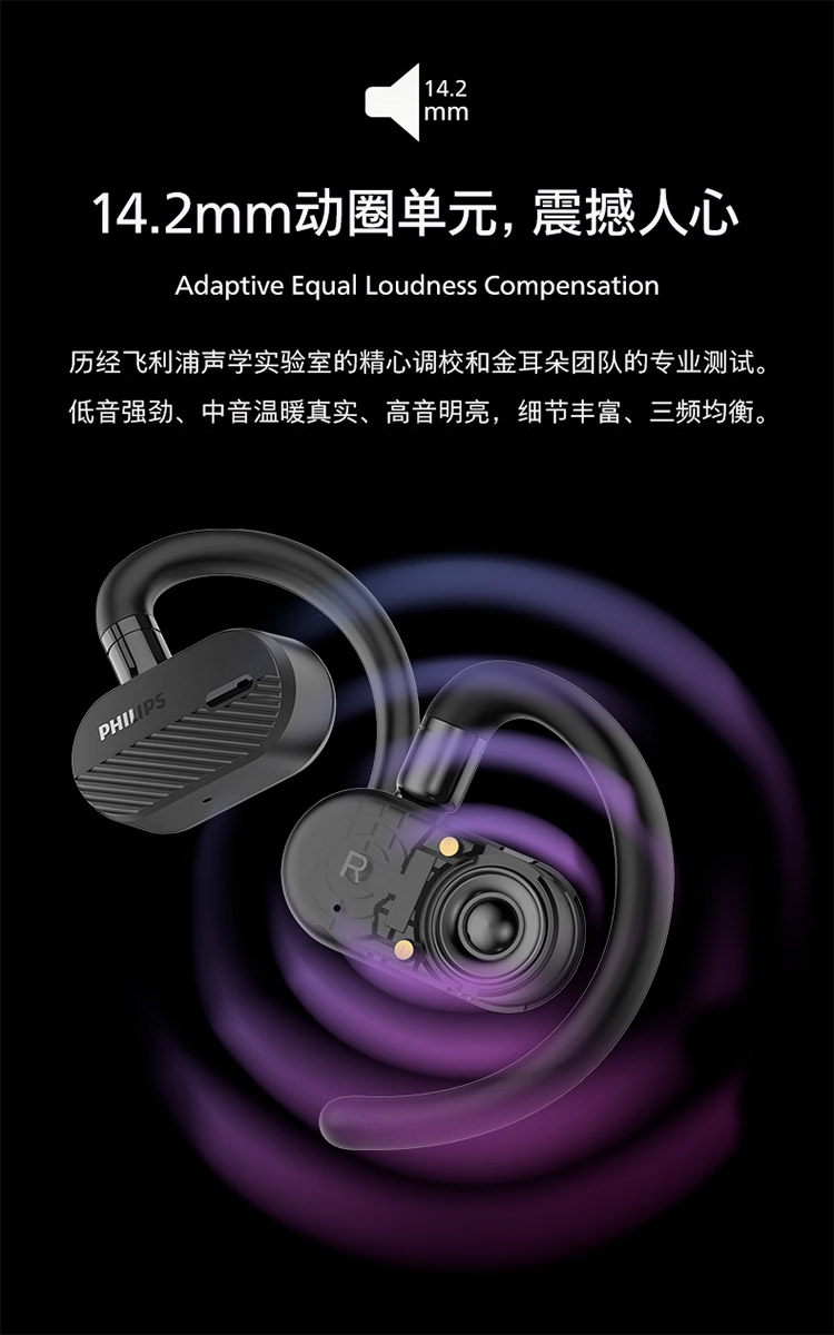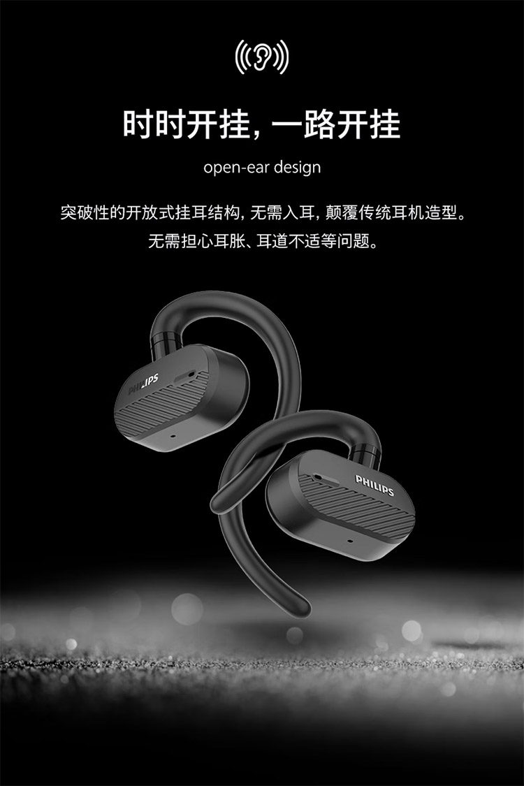 飞利浦不入耳开放式运动耳机真无线蓝牙耳机挂耳式跑步商务耳麦TAA6708