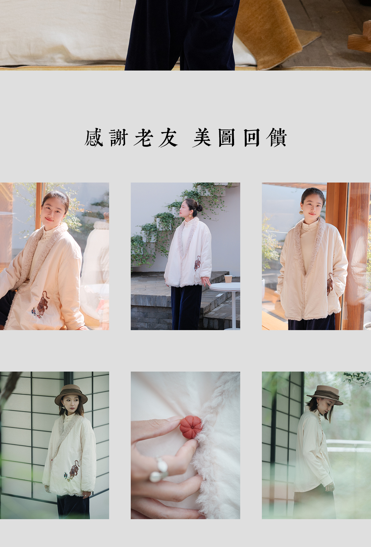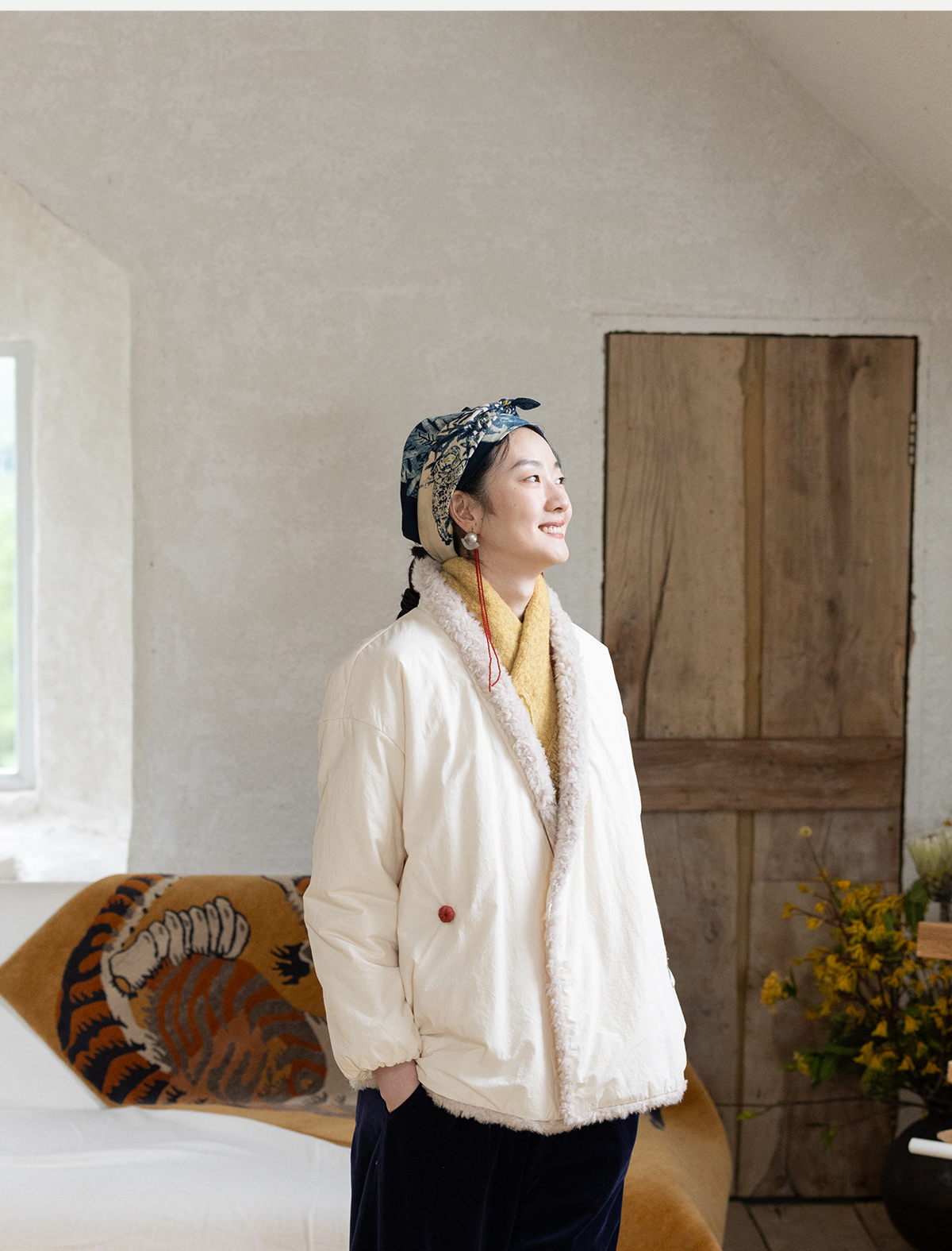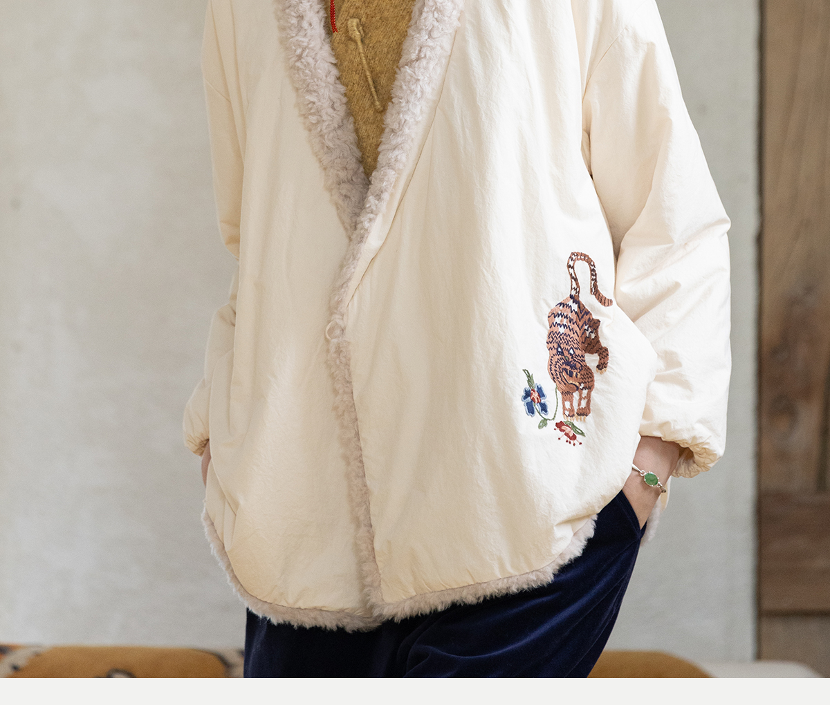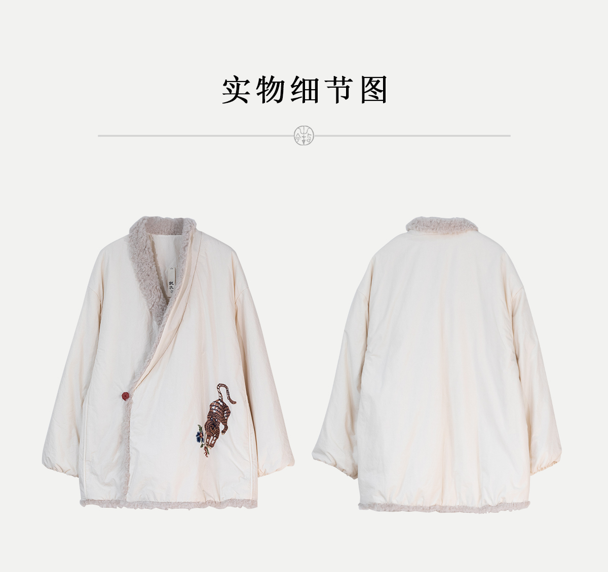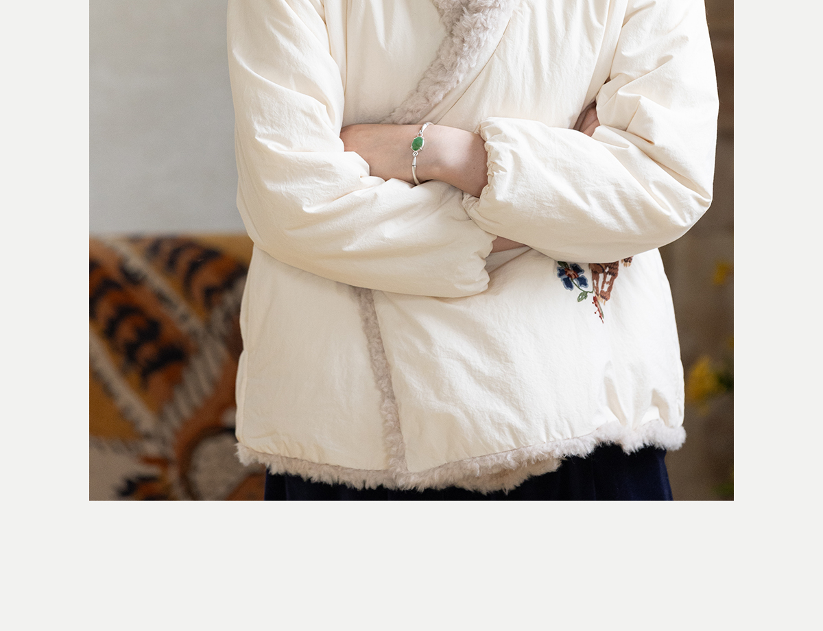 牧衣游原创 手工刺绣60支纯棉短外套女白色抗寒加厚保暖开衫 汀白
