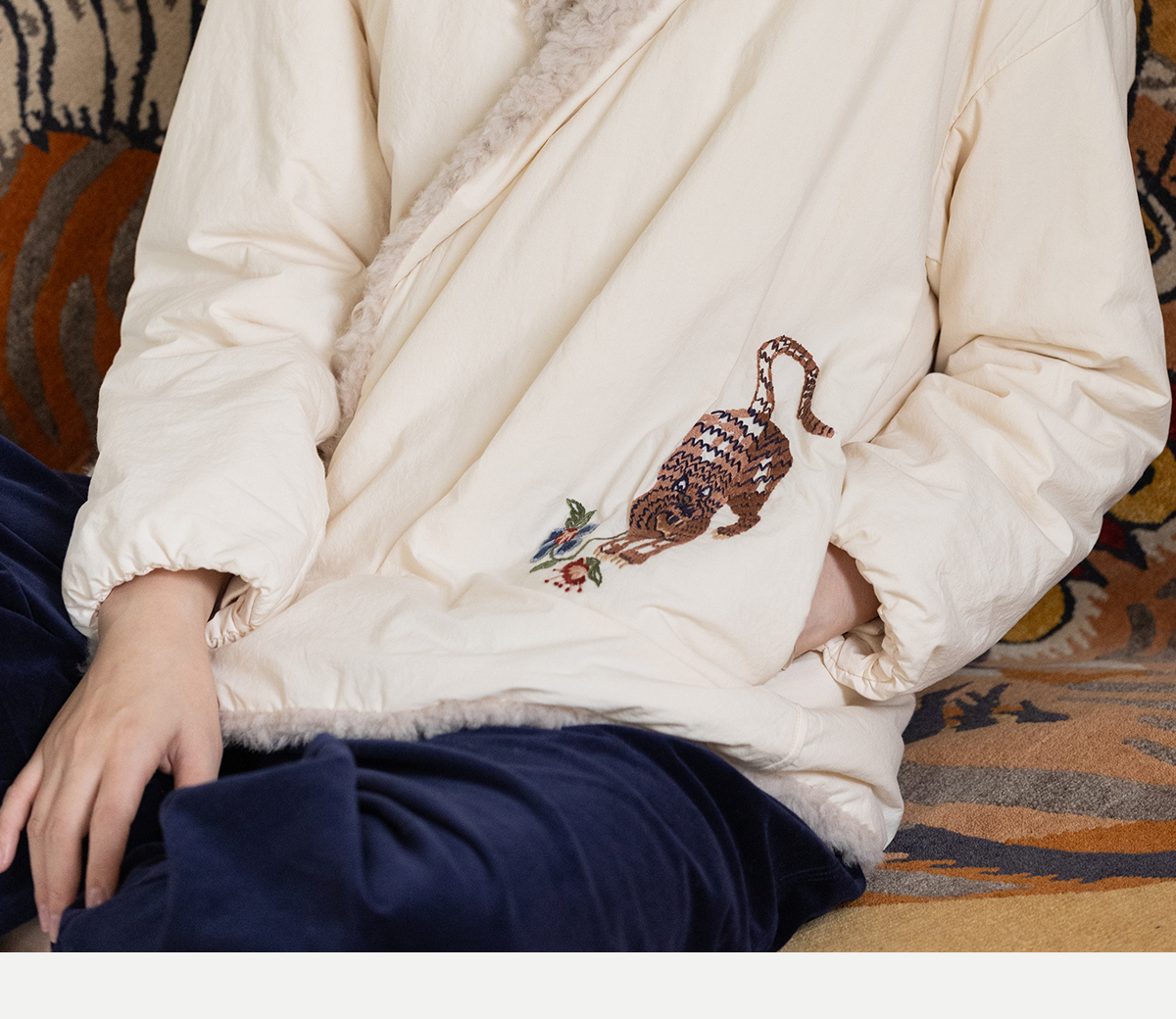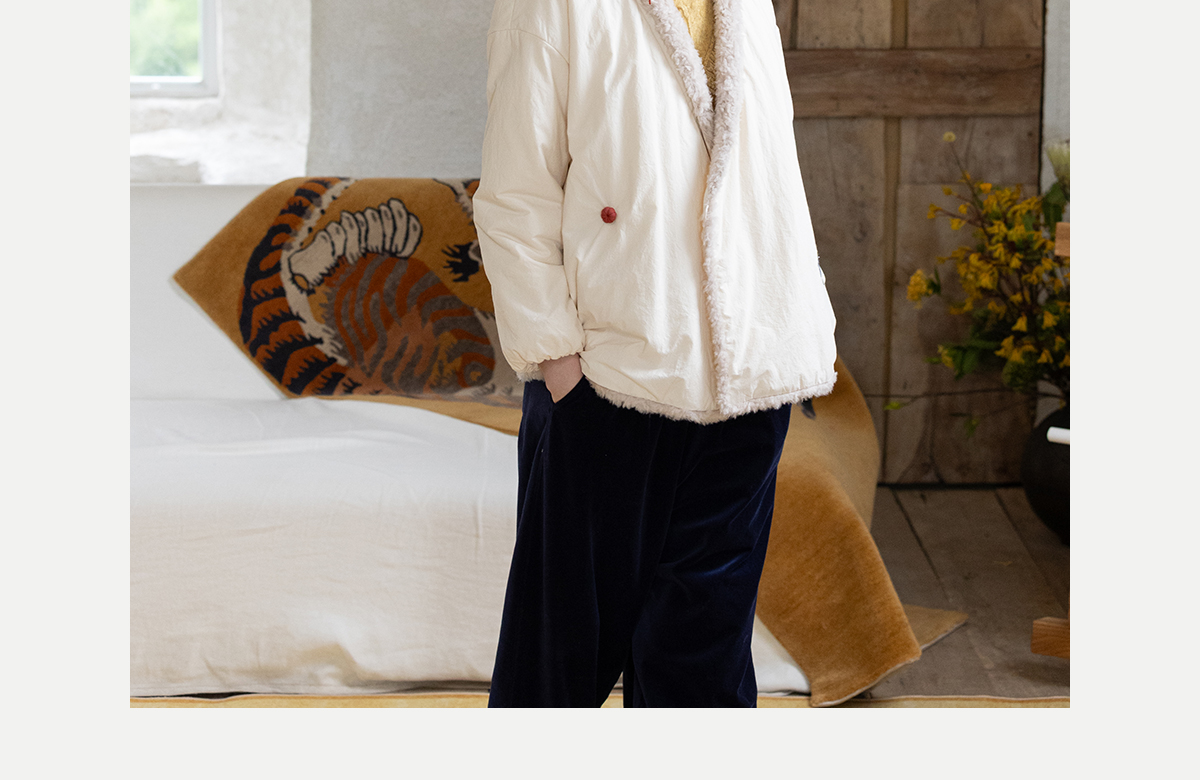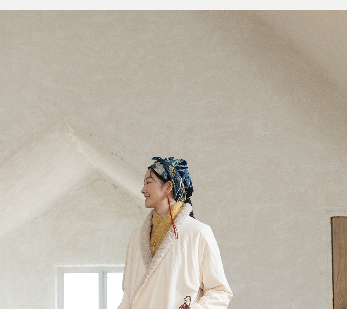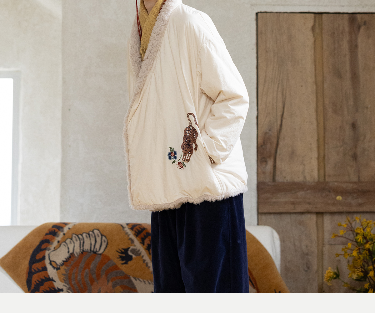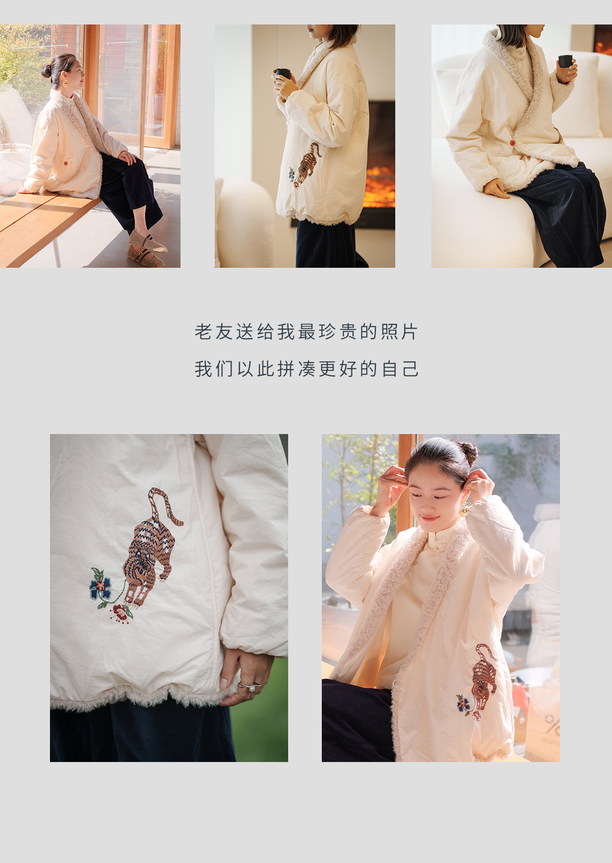 牧衣游原创 手工刺绣60支纯棉短外套女白色抗寒加厚保暖开衫 汀白