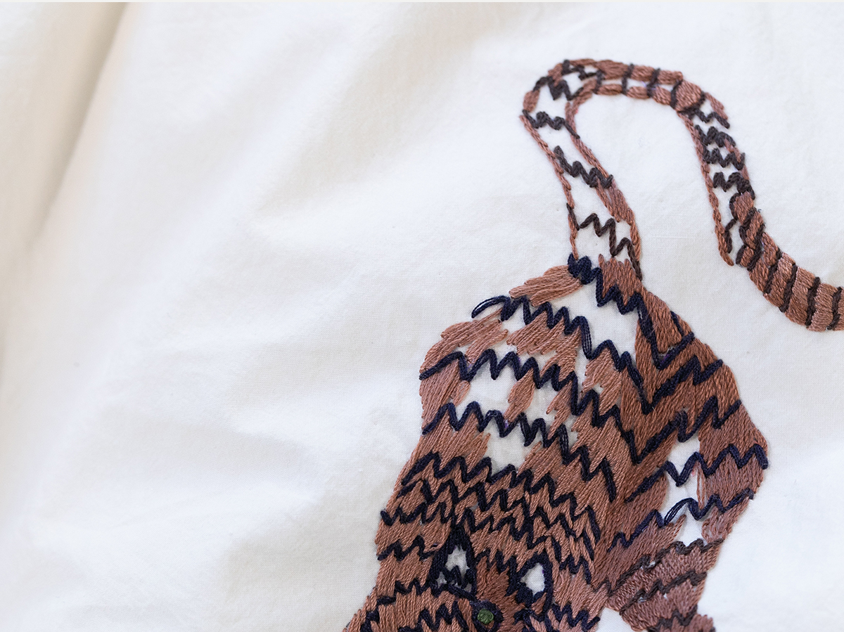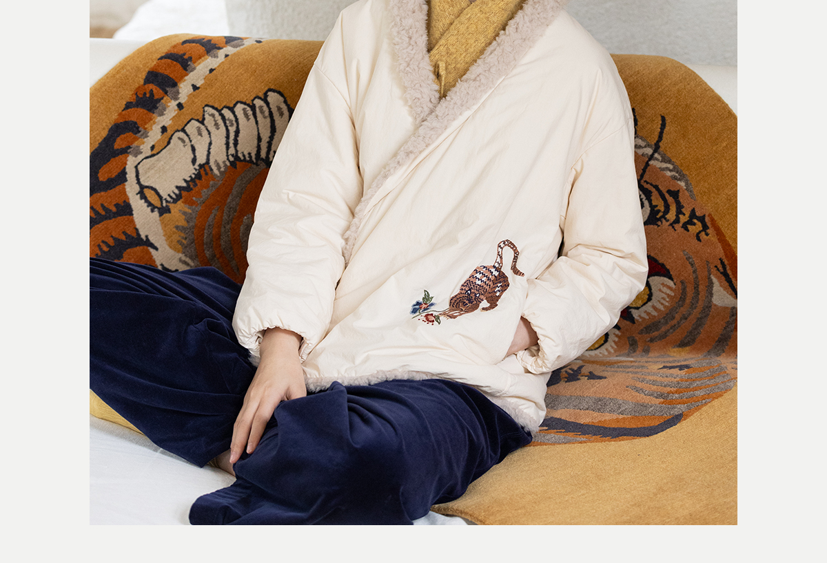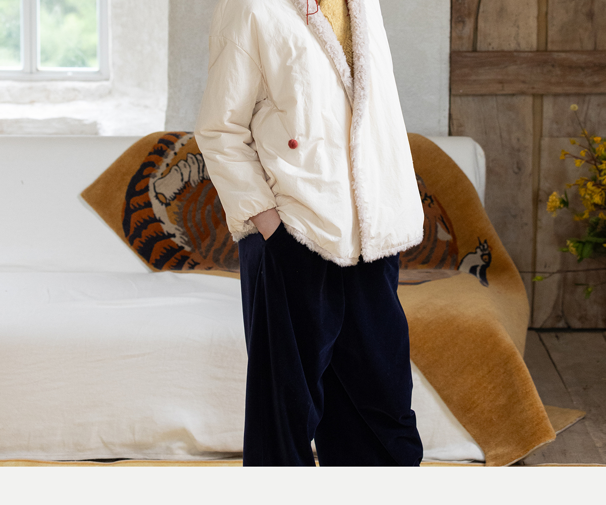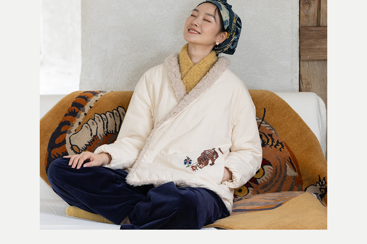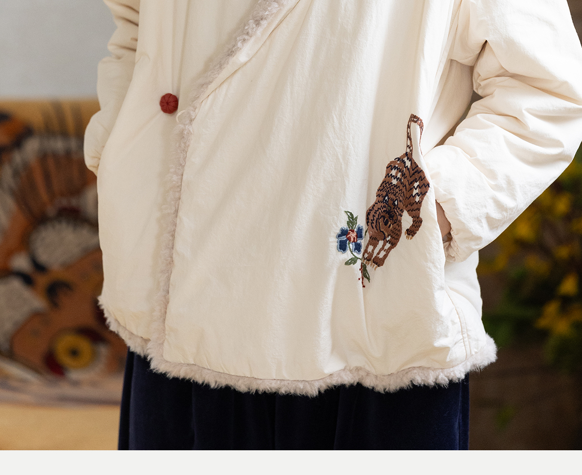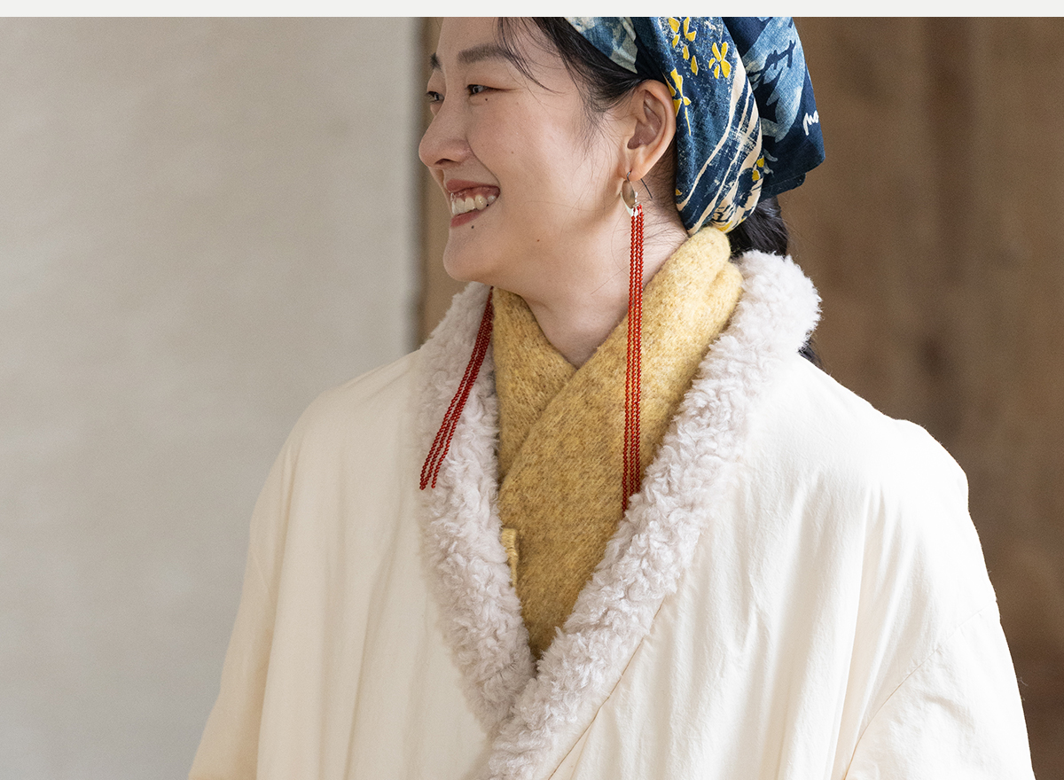 牧衣游原创 手工刺绣60支纯棉短外套女白色抗寒加厚保暖开衫 汀白
