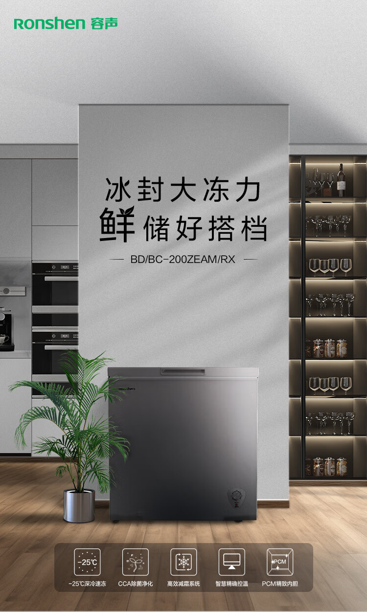 容声200升小冰柜家用商用保鲜冷冻两用冷柜节能减霜冰箱 以旧换新国补 墨韵灰BD/BC-200ZEAM/RX