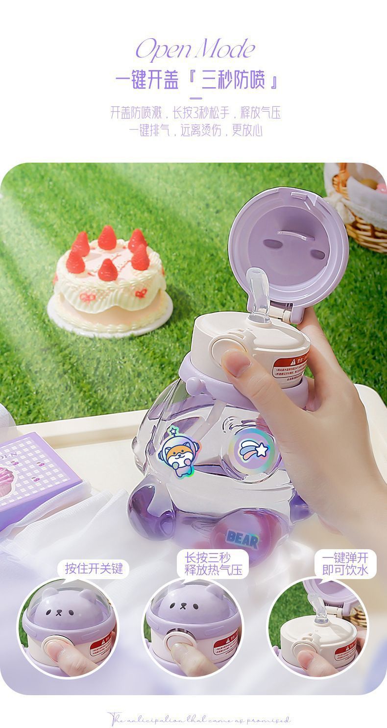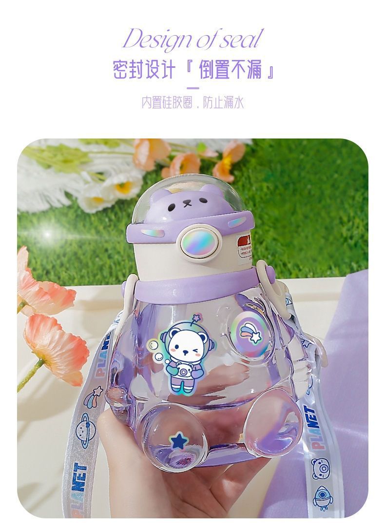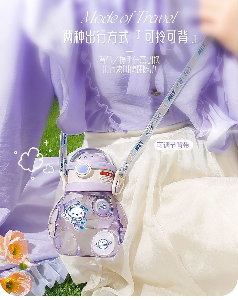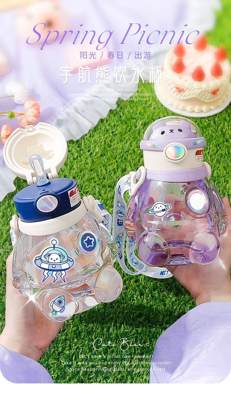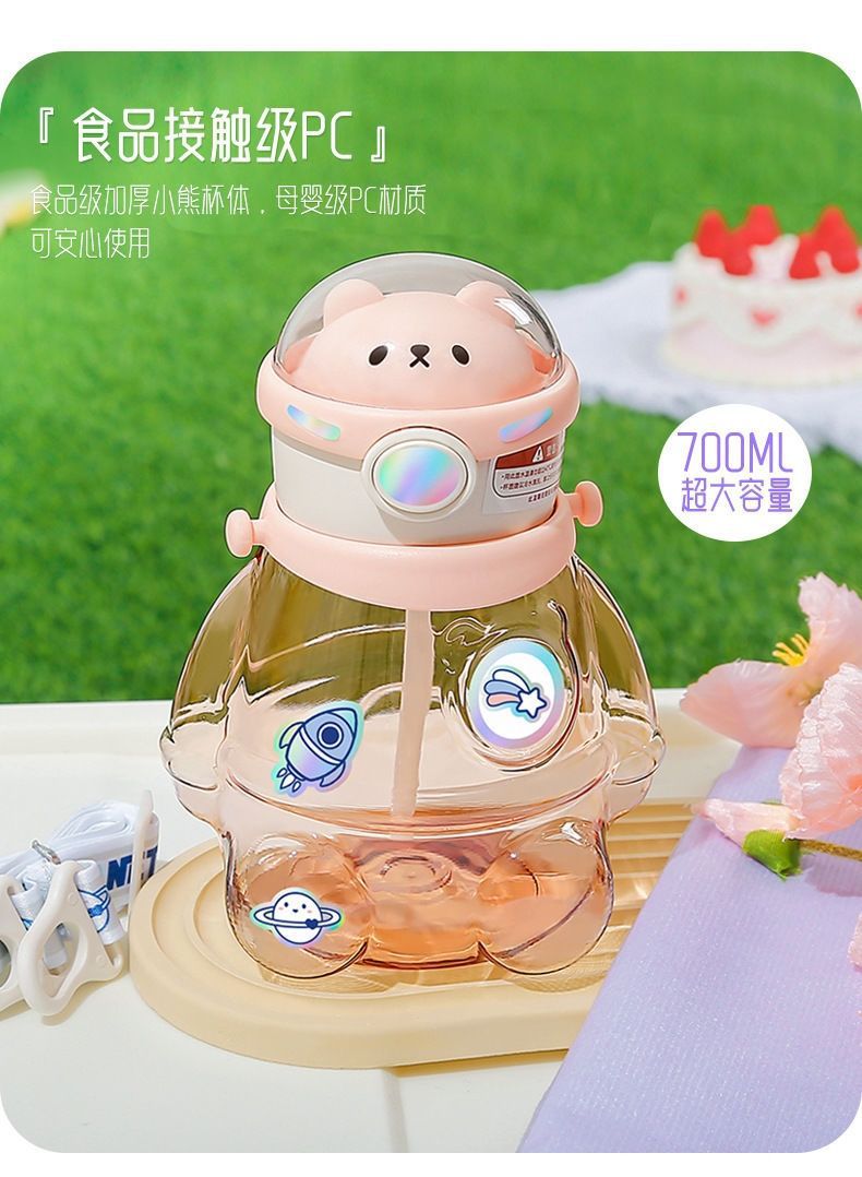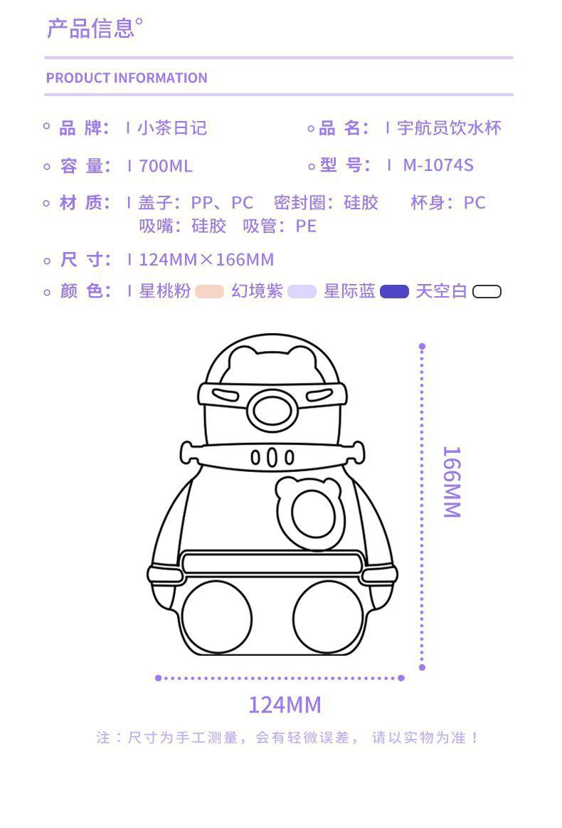 【送背带贴纸!宇航熊饮水杯】小茶日记宇航员夏季儿童吸管大肚杯吸管小熊水杯子ins高颜值便携-QQ
