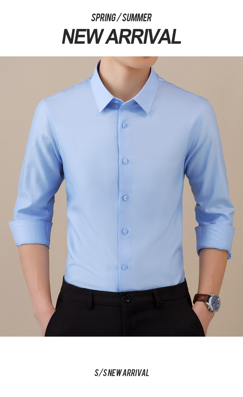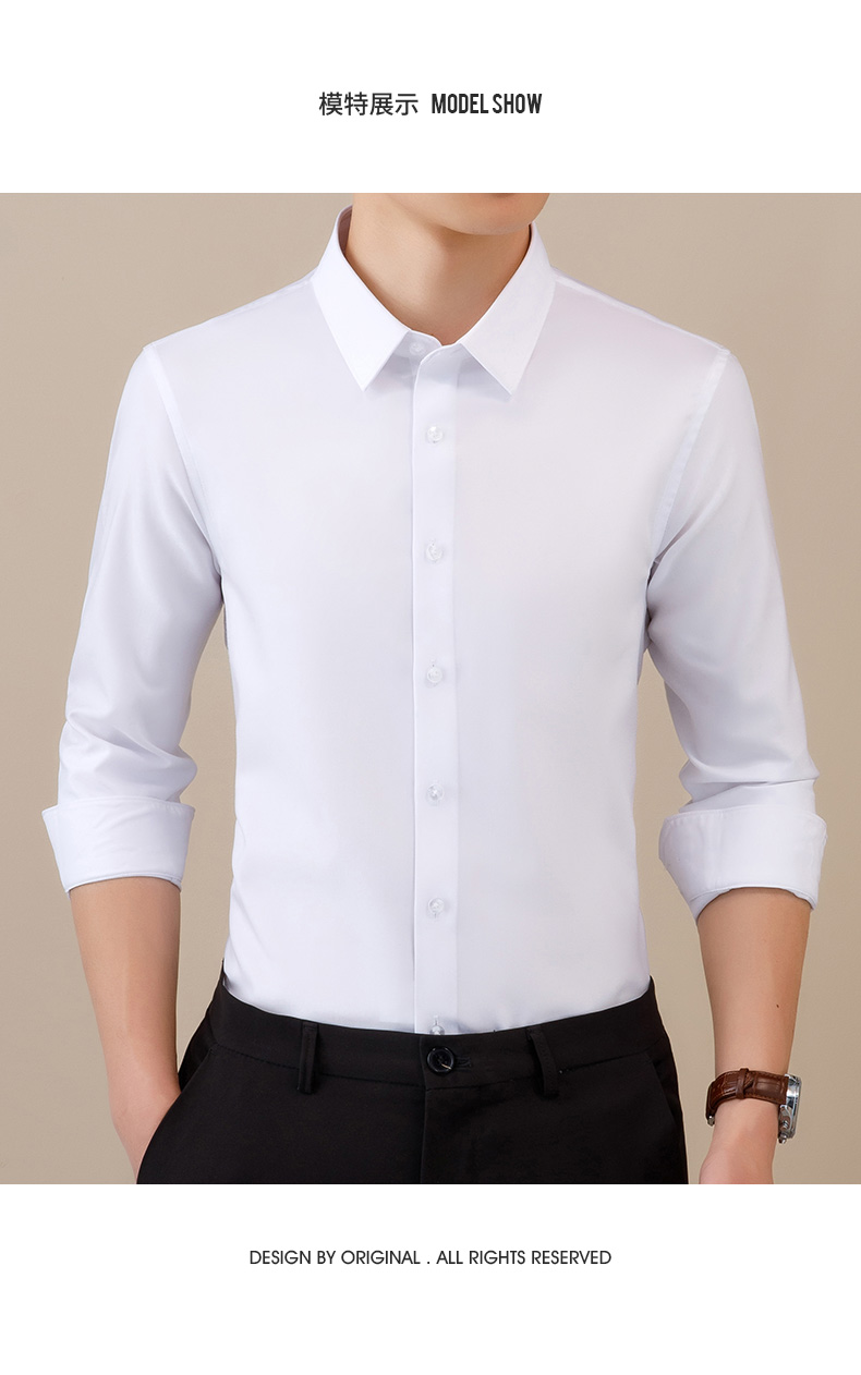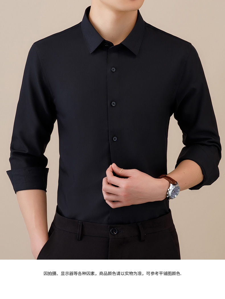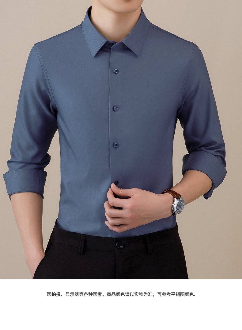 【莱赛尔弹力面料】罗蒙春秋男士经典翻领纯色长袖衬衫舒适百搭通勤上班职业男衬衣