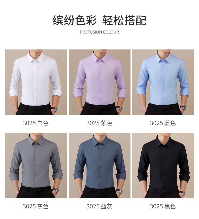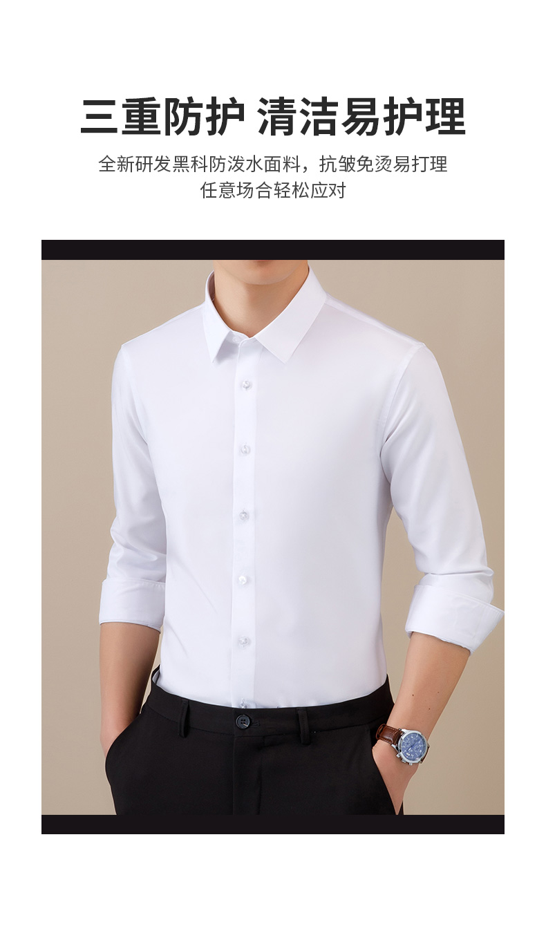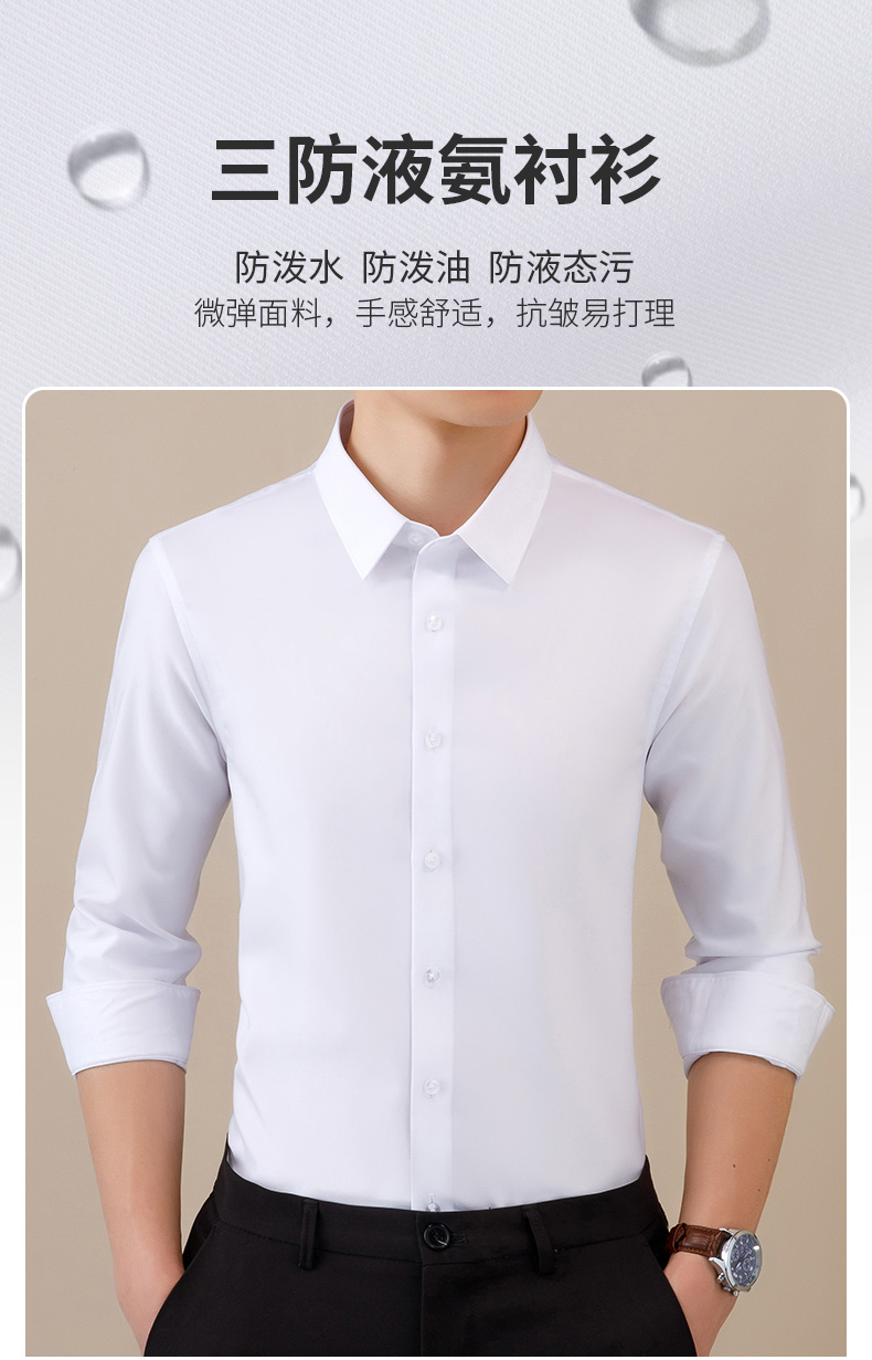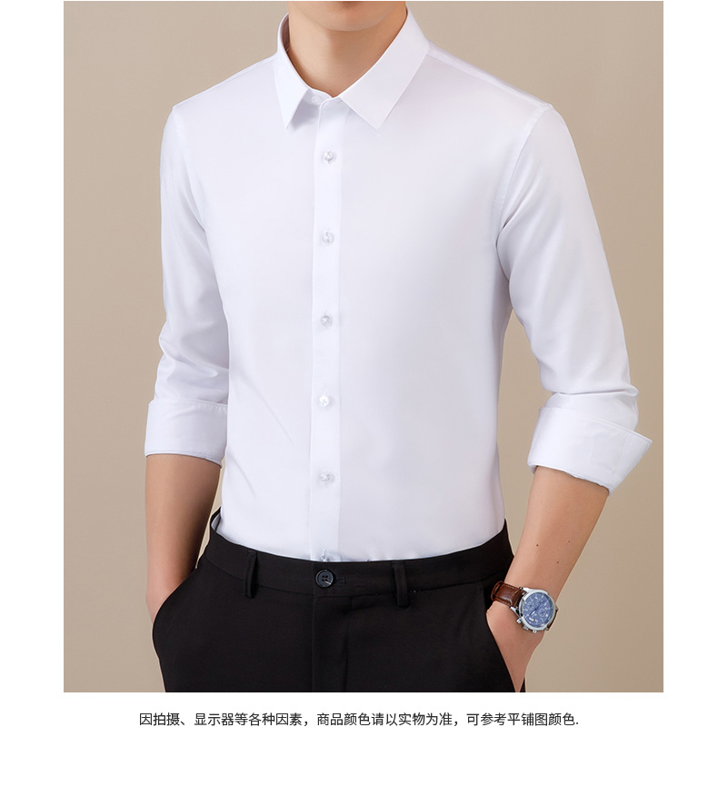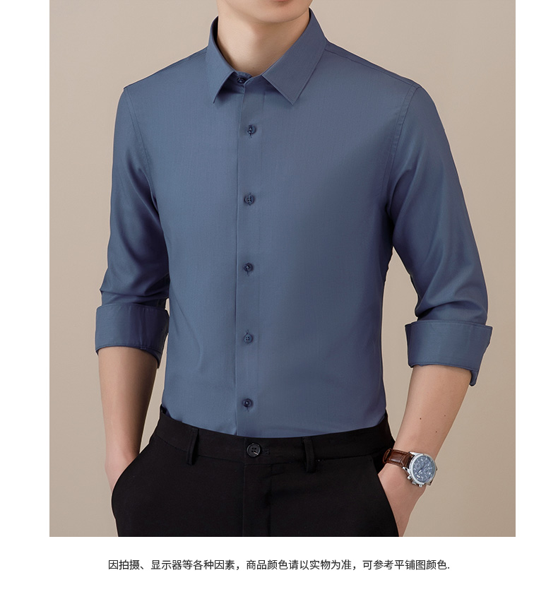 【莱赛尔弹力面料】罗蒙春秋男士经典翻领纯色长袖衬衫舒适百搭通勤上班职业男衬衣