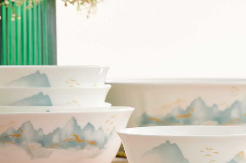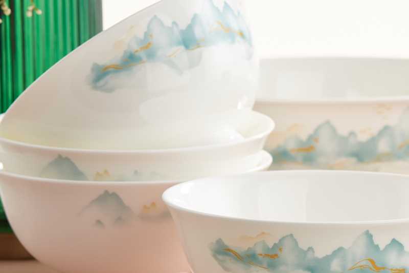 【小程序专享】凡瑞斯云水人家(釉中彩)10人用38头骨瓷餐具