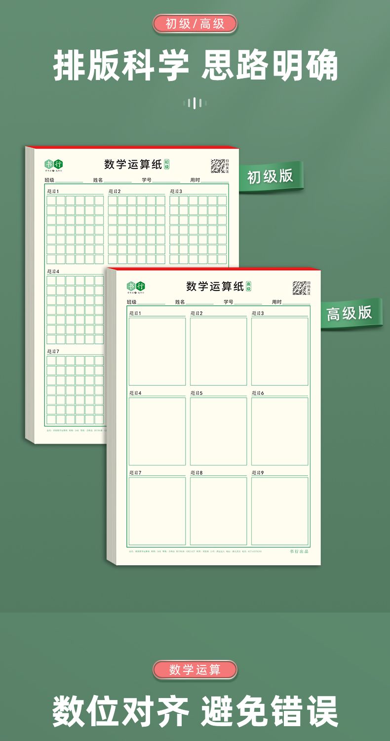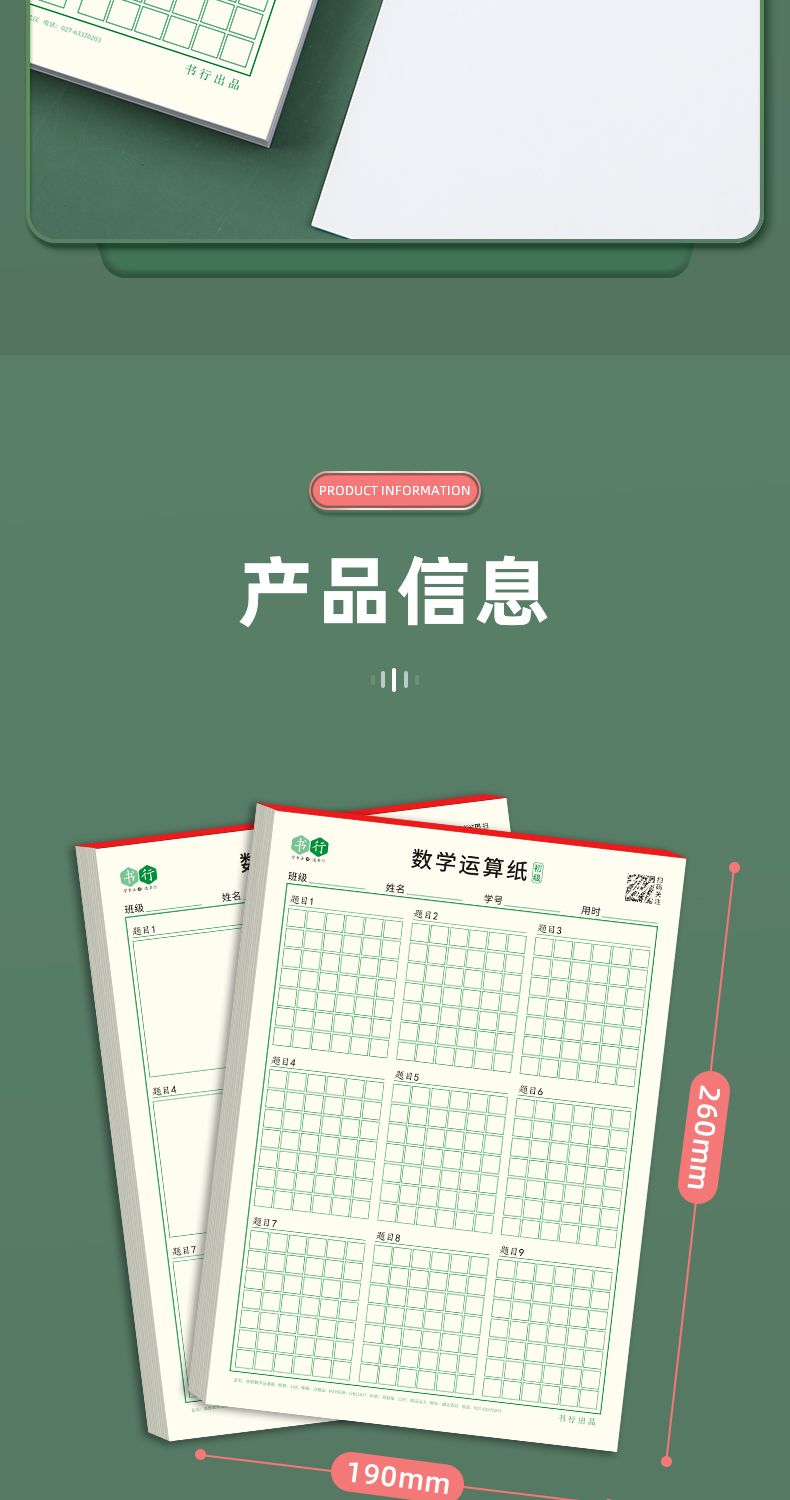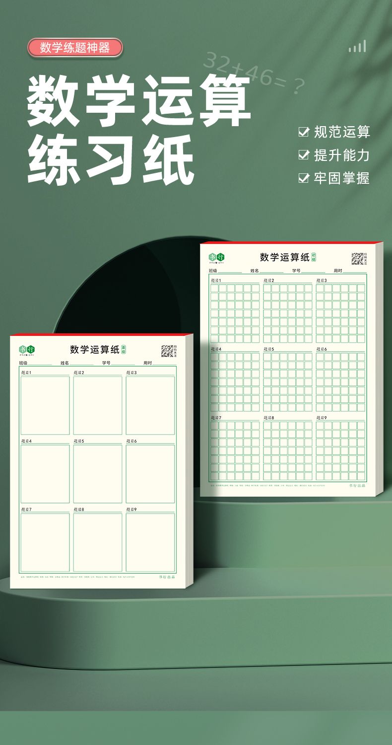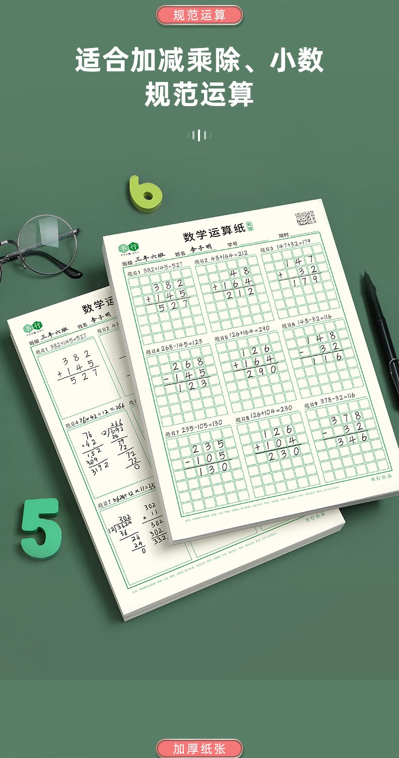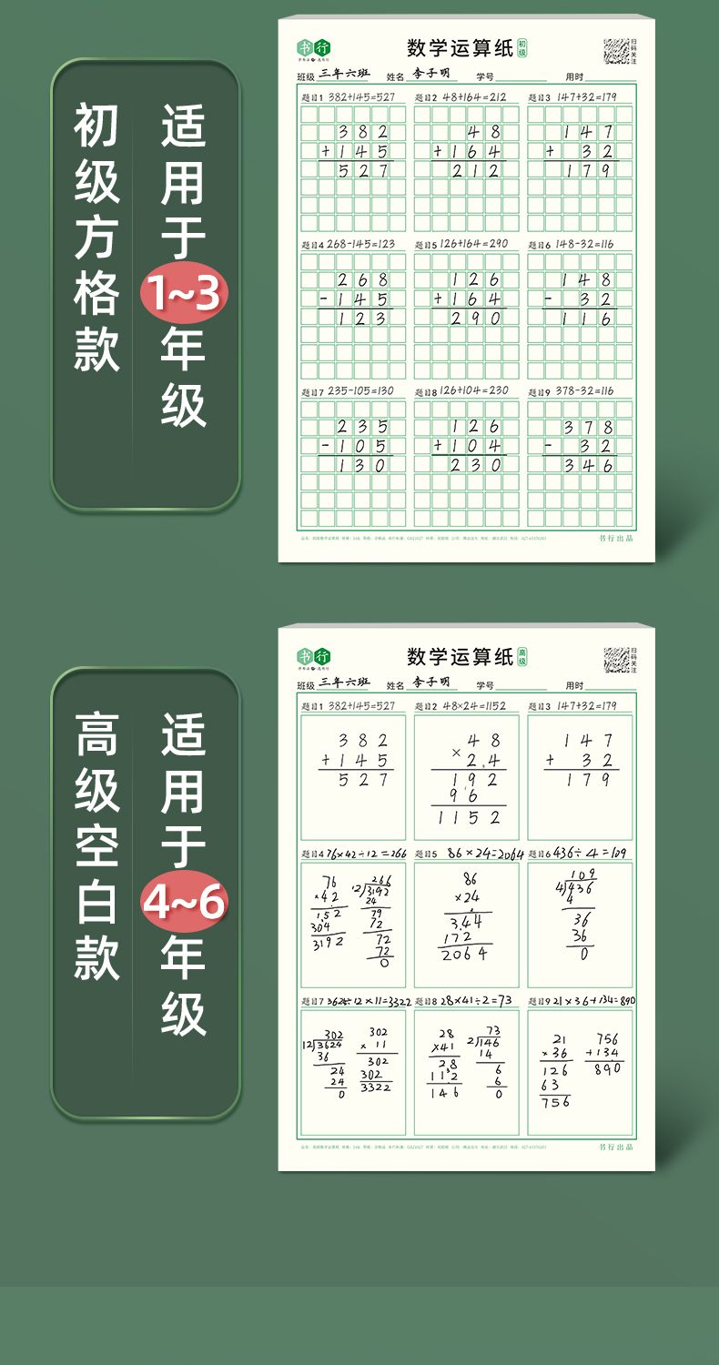 【数学运算纸】小学生规范运算加减乘除运算本数位对齐口算草稿纸小学专用