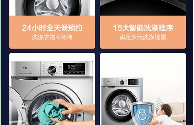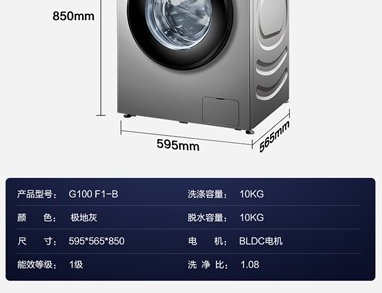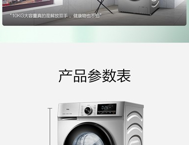 TCL 10公斤 大容量 蜂巢水晶内筒 变频 滚筒洗衣机 G100F1-B