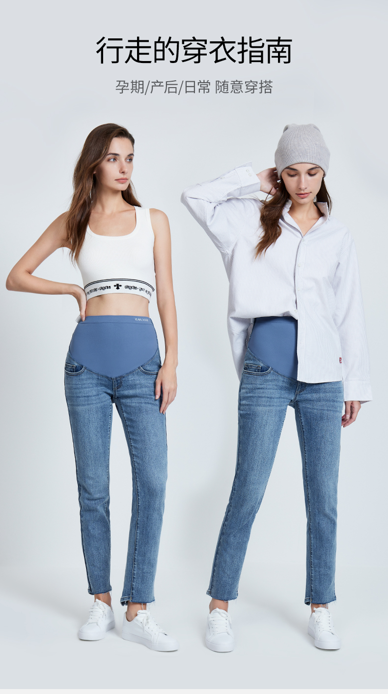 【孕妈服饰】嫚熙孕妇牛仔裤休闲外穿秋季小脚显瘦怀孕期直筒铅笔裤女