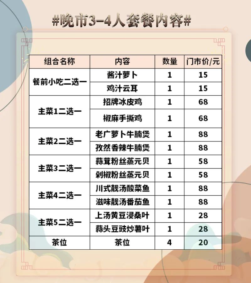 ◆ 套餐包含菜品需1次消费完毕,不可拆分不同日期享用,部分菜品若因时令或其他不可抗因素导致无法提供,将视实际情况以等价菜品替换