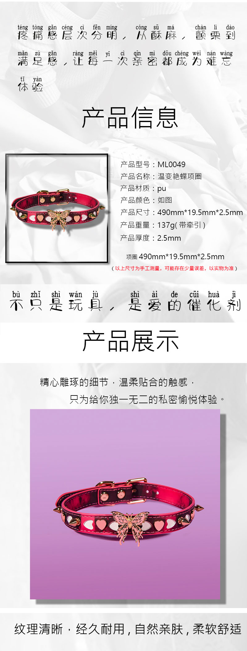 魅灵温变 温变荆棘艳蝶项圈 (黑变红)项圈+牵引