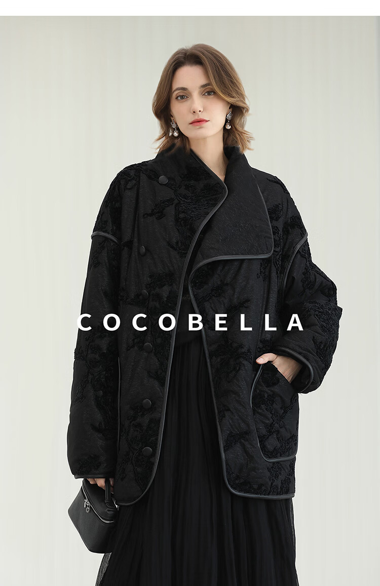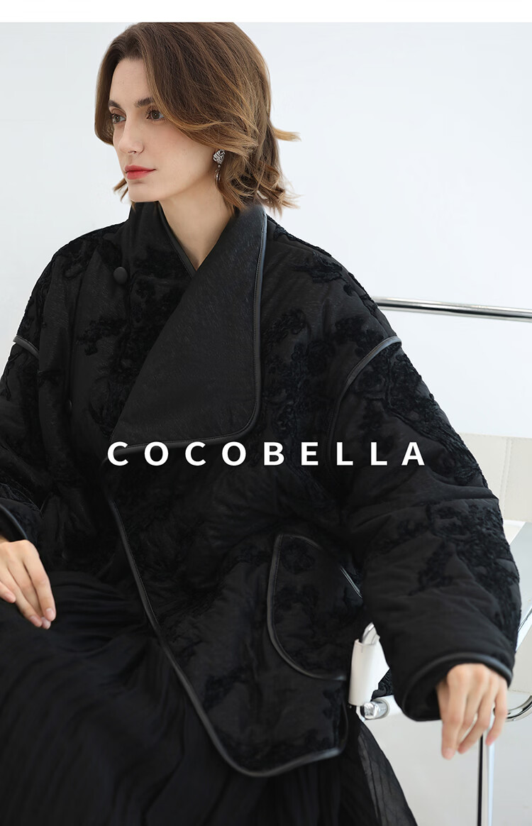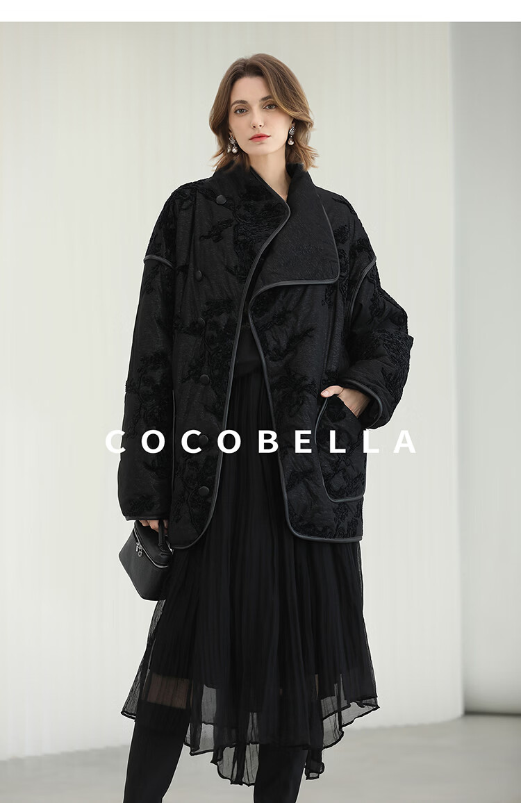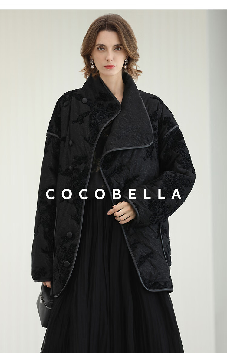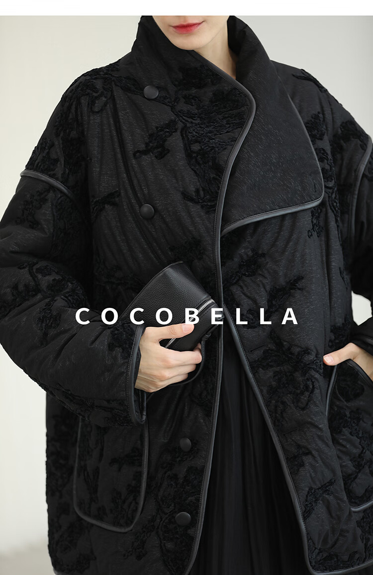 COCOBELLA国风丝绒盘花绣轻型棉服秋冬不对称翻领外套MF3023
