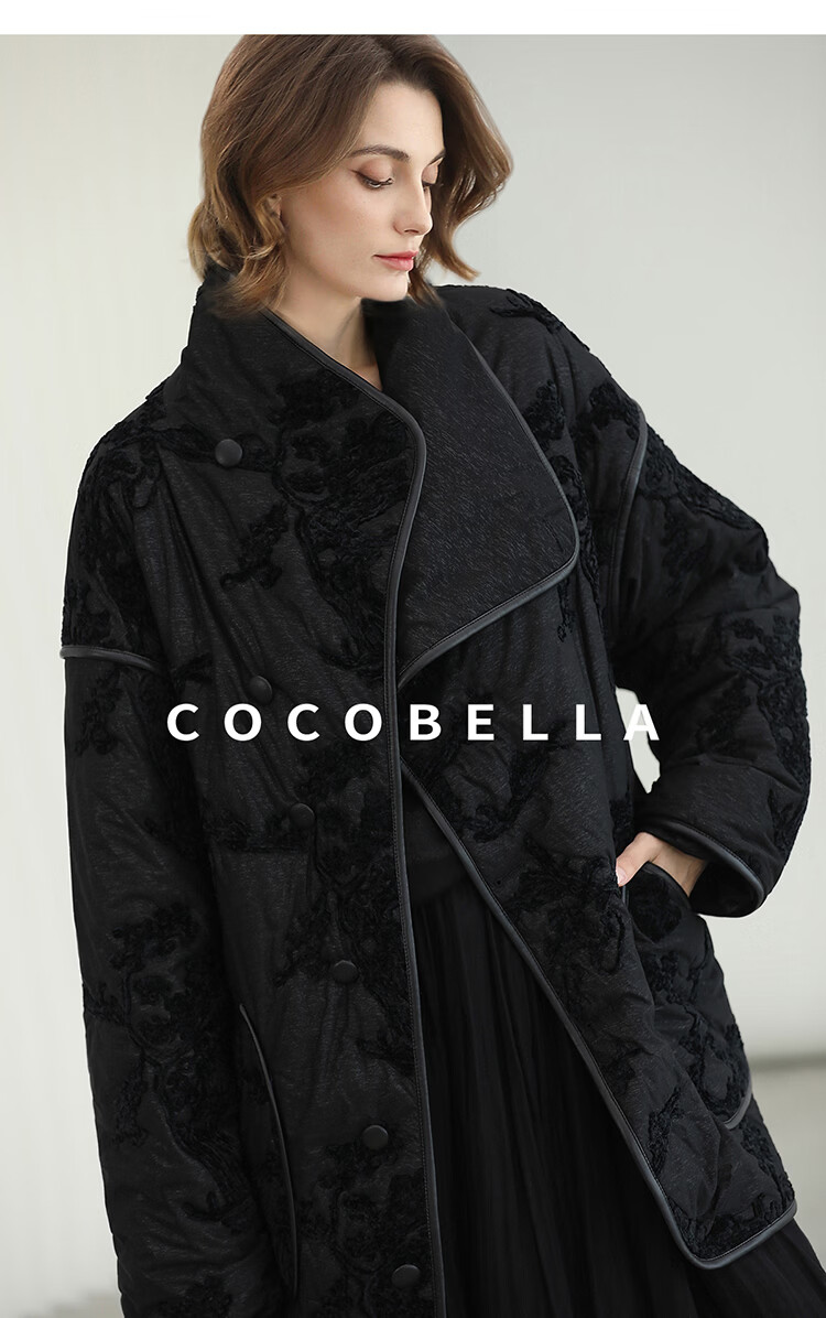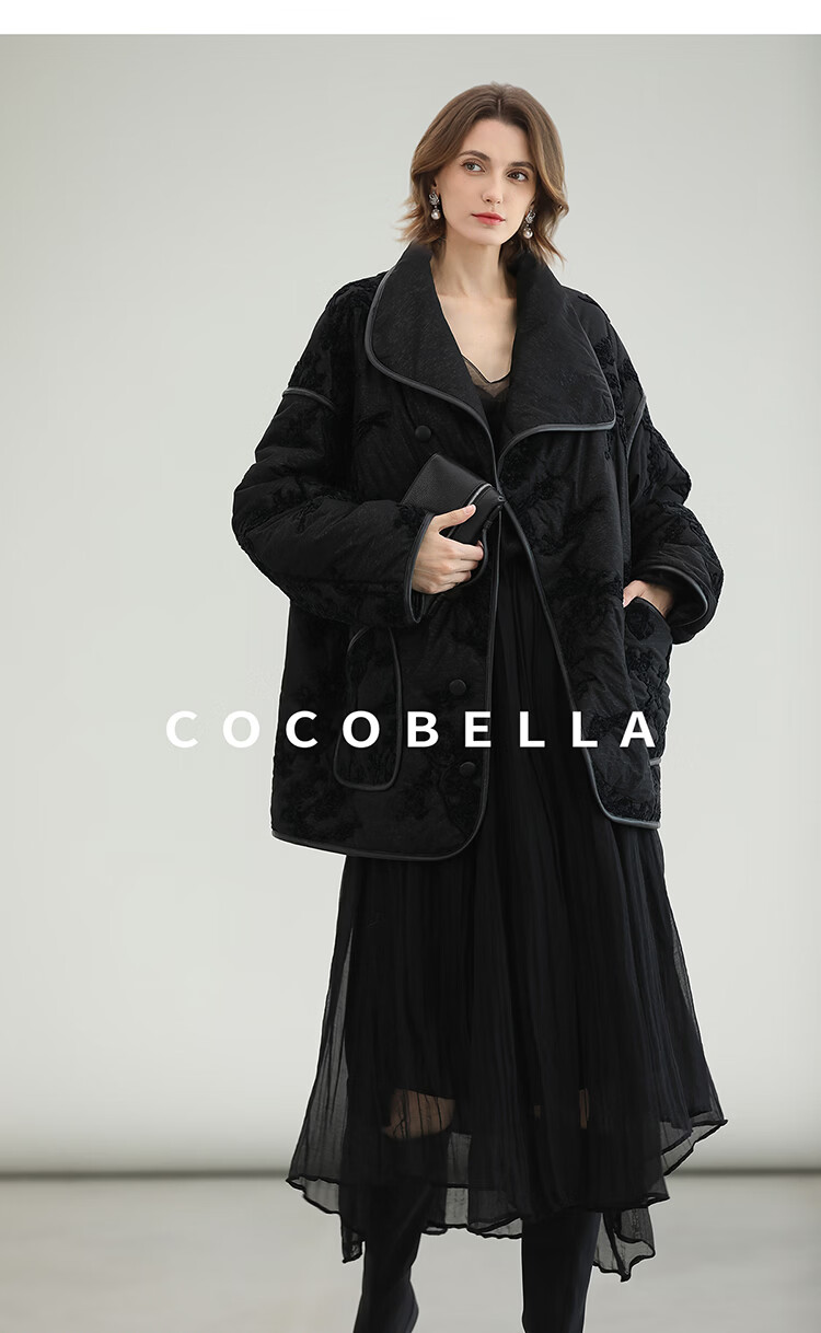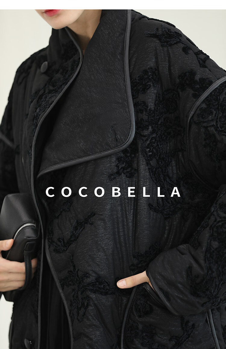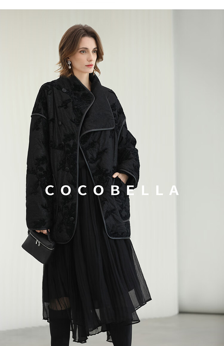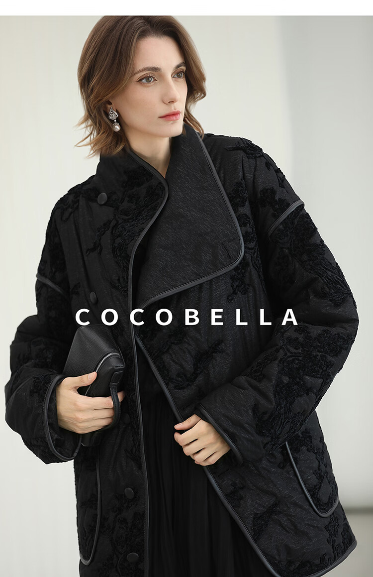 COCOBELLA国风丝绒盘花绣轻型棉服秋冬不对称翻领外套MF3023