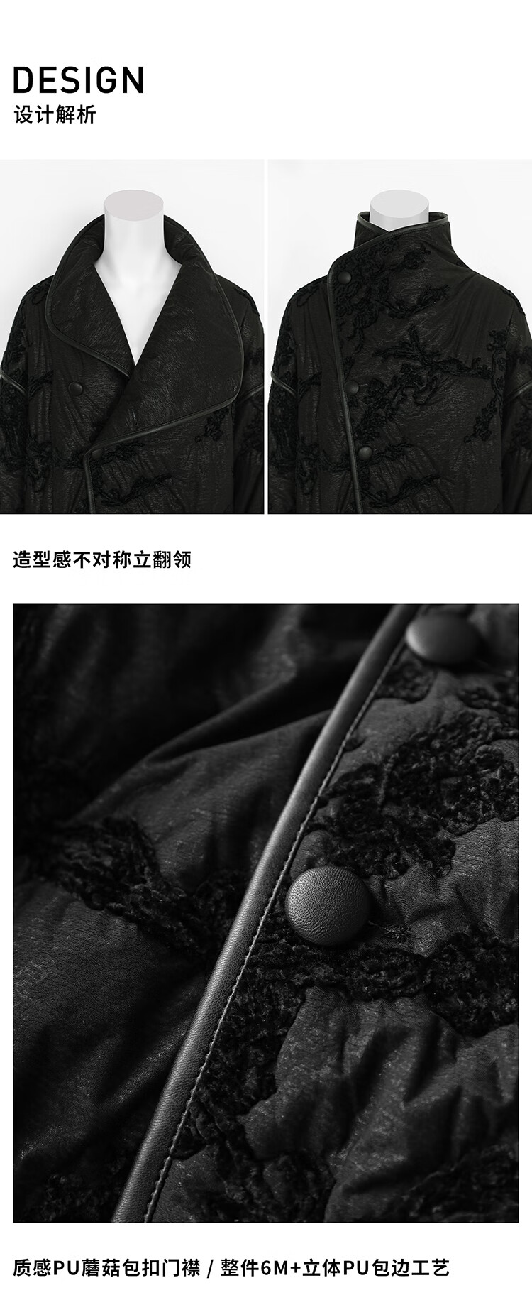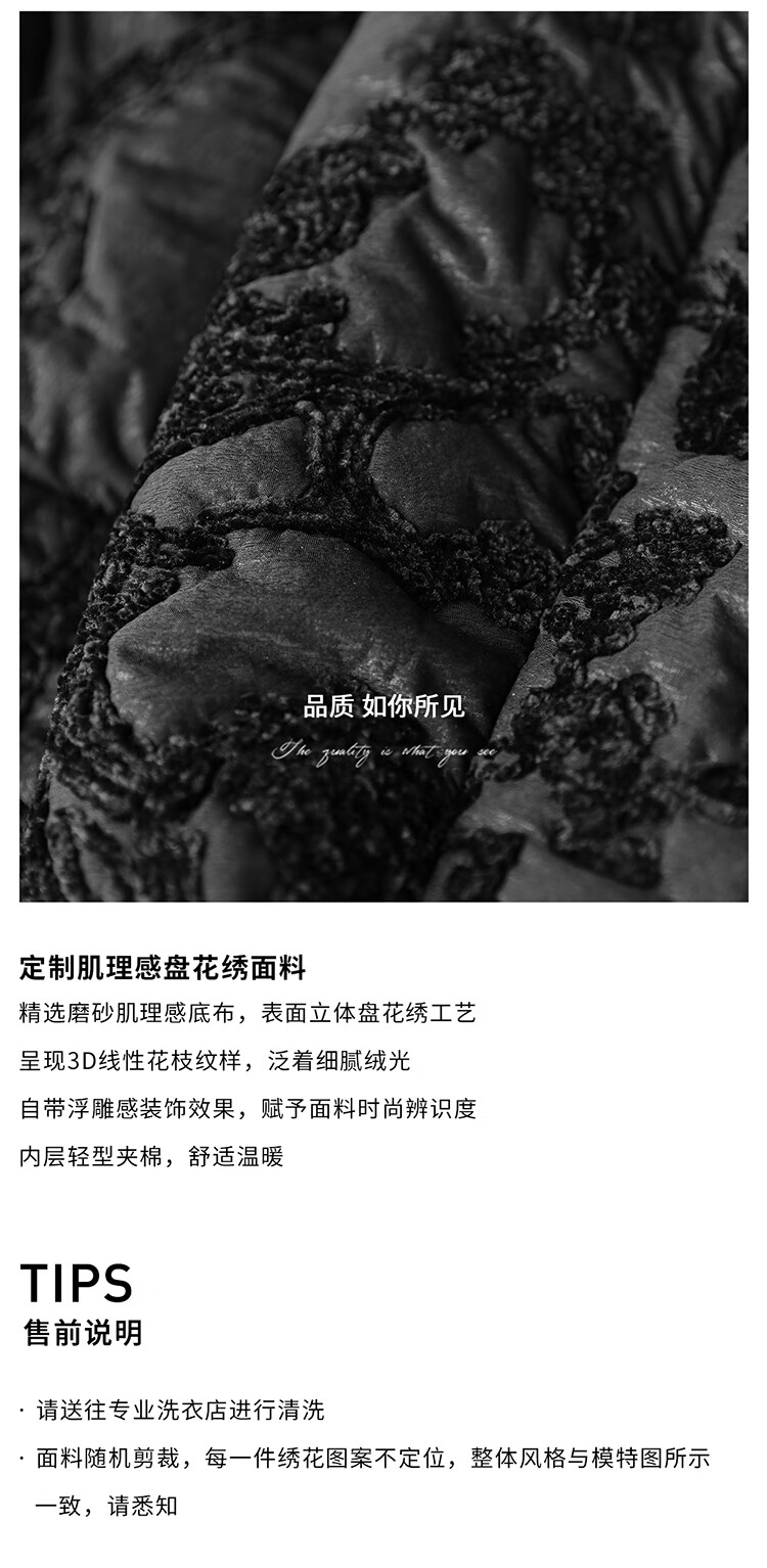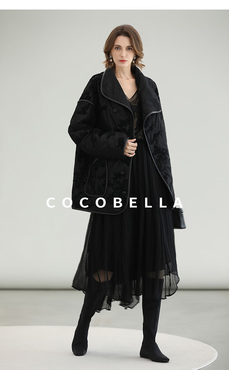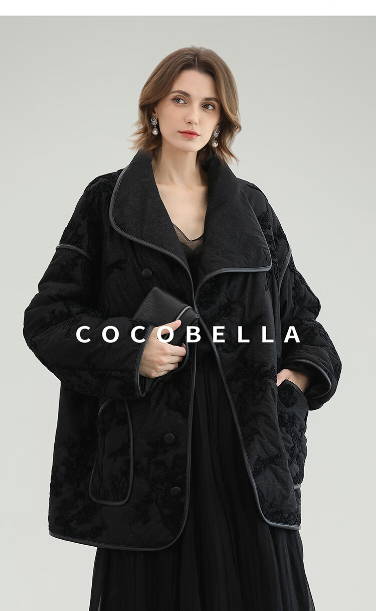 COCOBELLA国风丝绒盘花绣轻型棉服秋冬不对称翻领外套MF3023