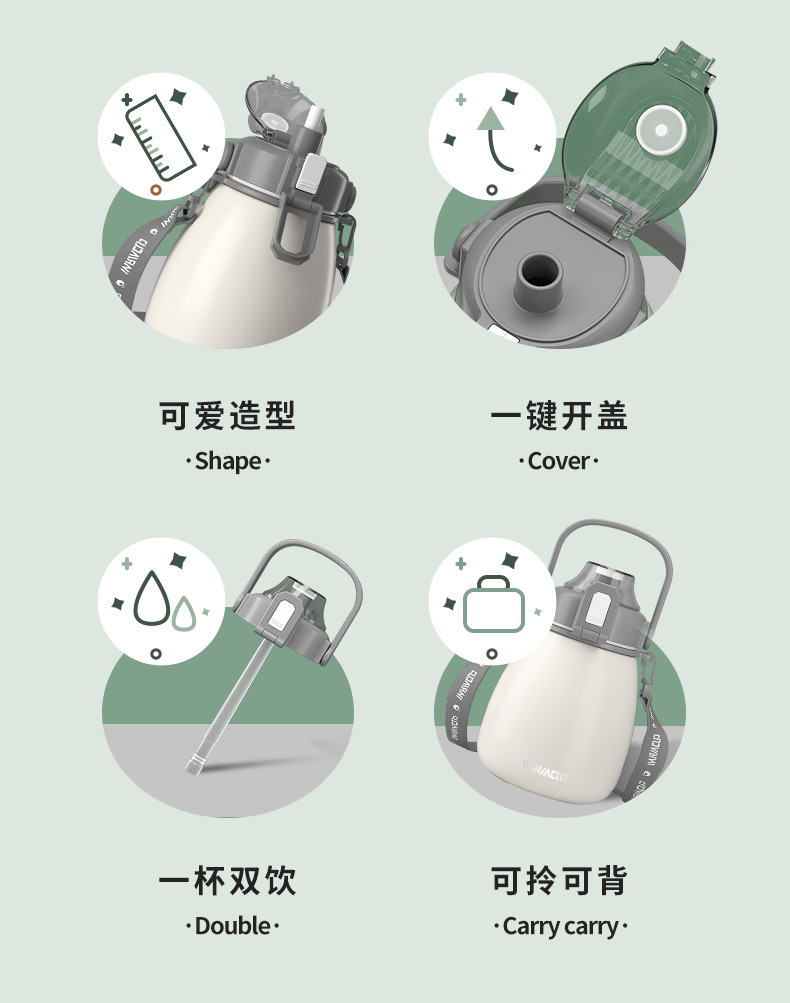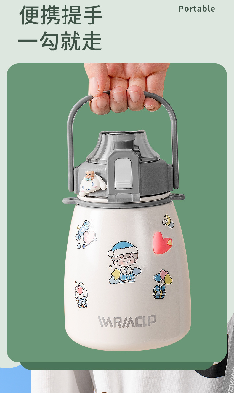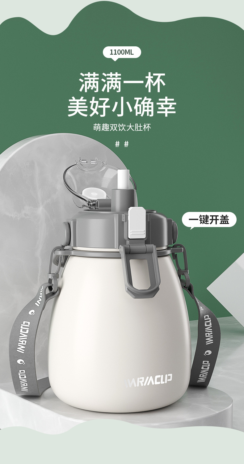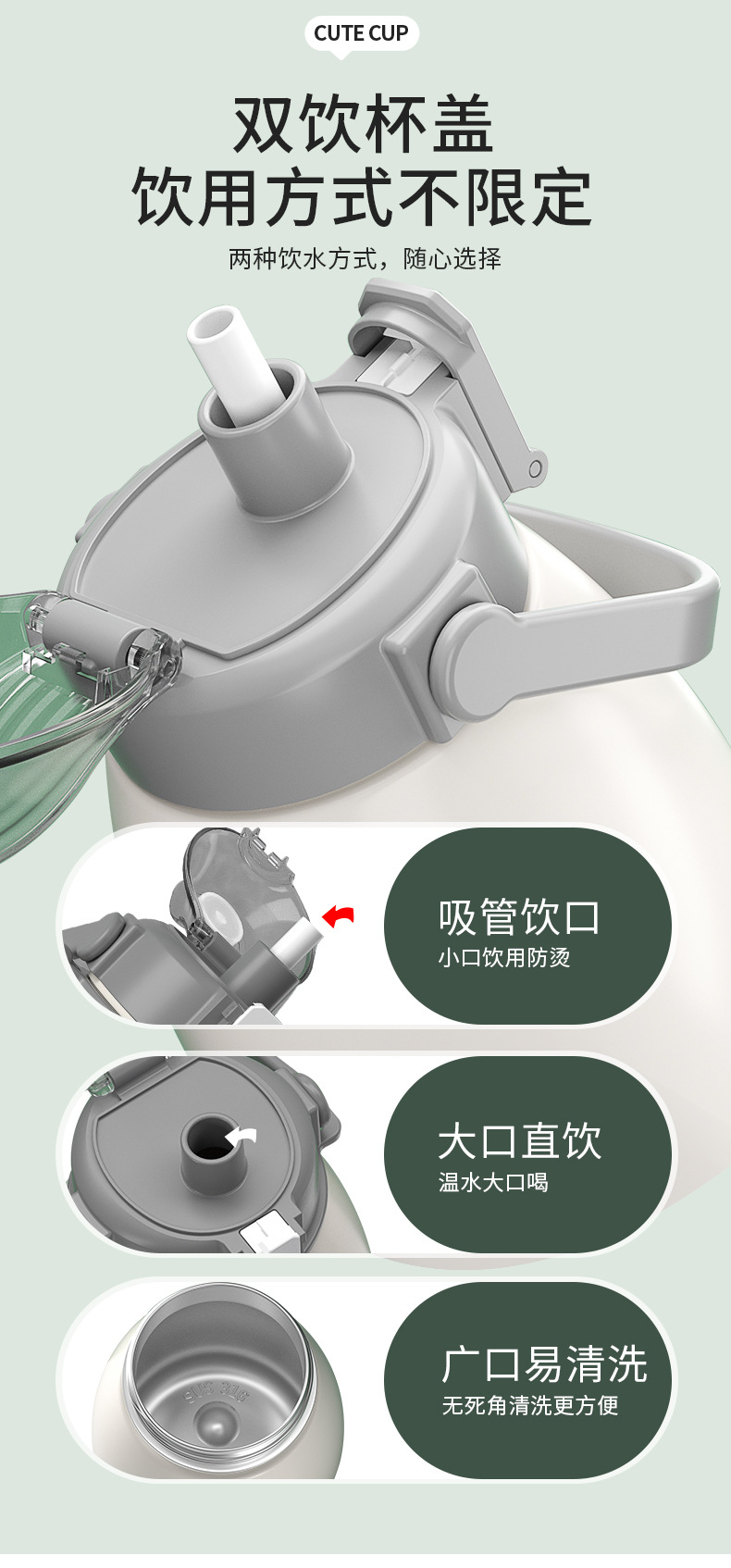 【保温18小时🔥900ML大容量】大肚杯保温杯女生2025儿童不锈钢吸管水壶大容量水杯子316不锈钢复古绿颜值水杯✨吸管+直饮双模式 16不锈钢健康加倍 随身背带超方便