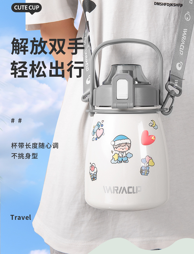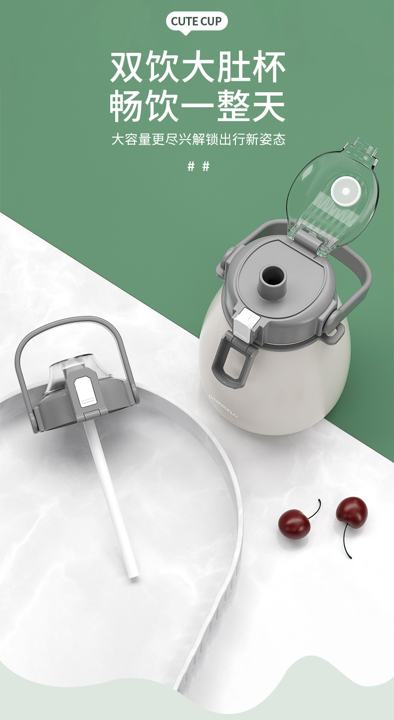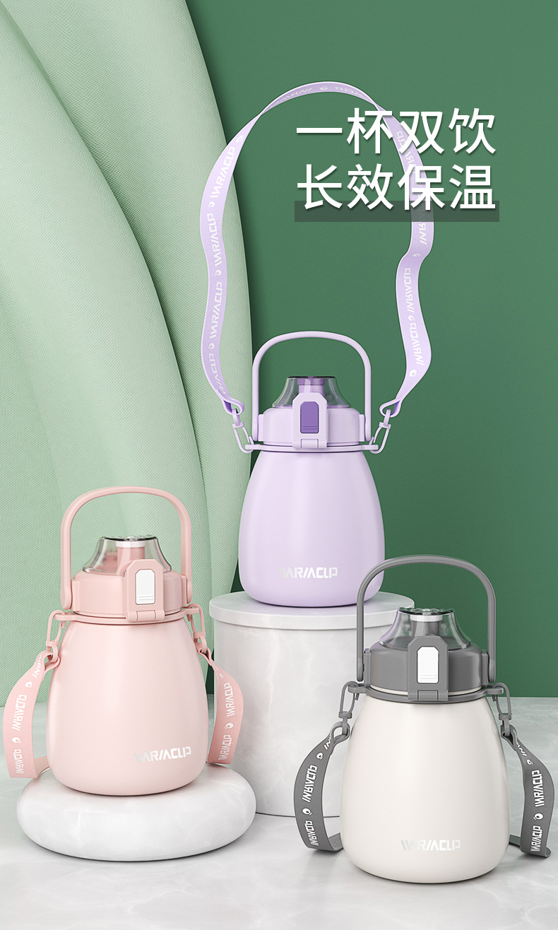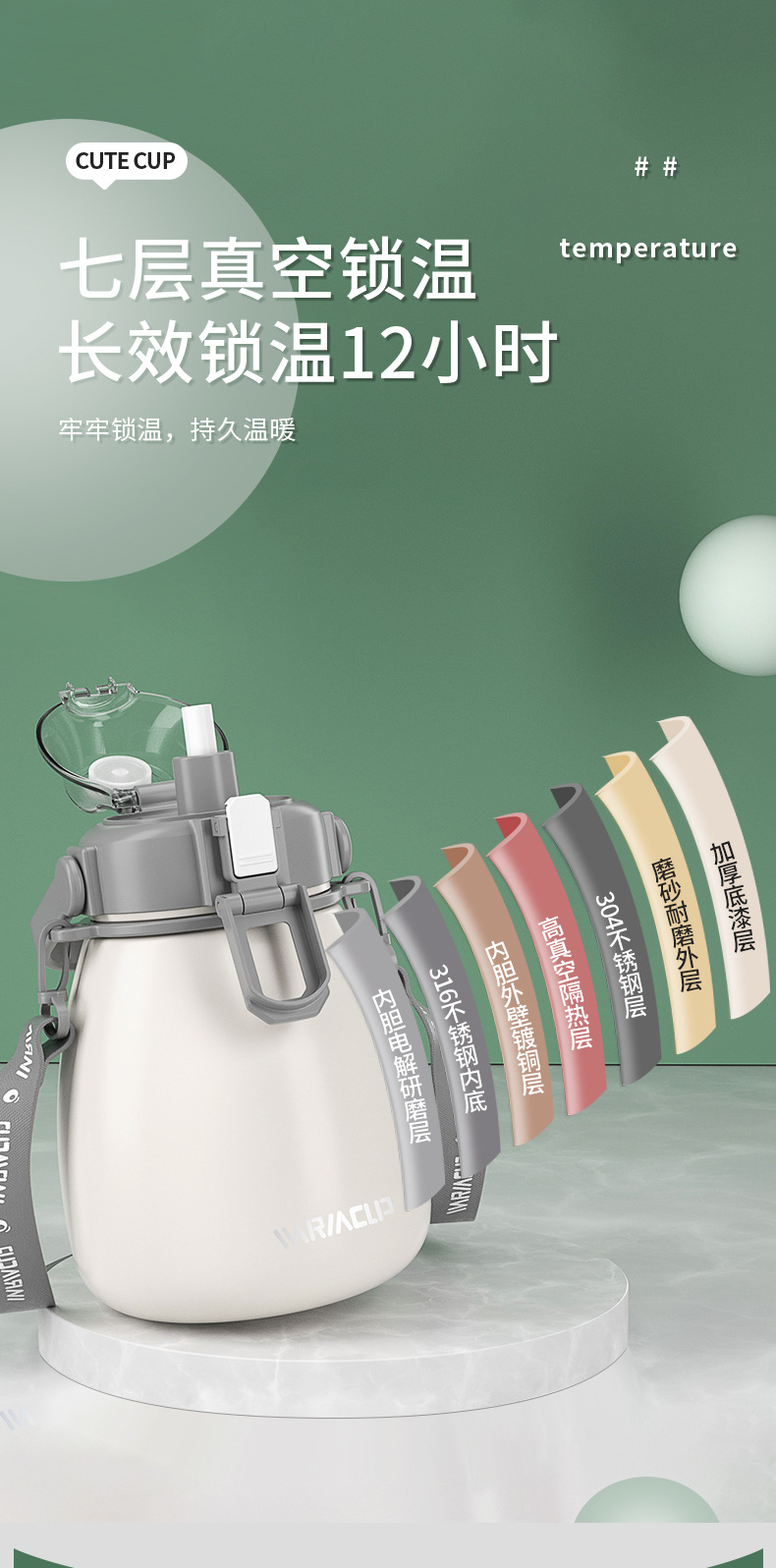 【保温18小时🔥900ML大容量】大肚杯保温杯女生2025儿童不锈钢吸管水壶大容量水杯子316不锈钢复古绿颜值水杯✨吸管+直饮双模式 16不锈钢健康加倍 随身背带超方便